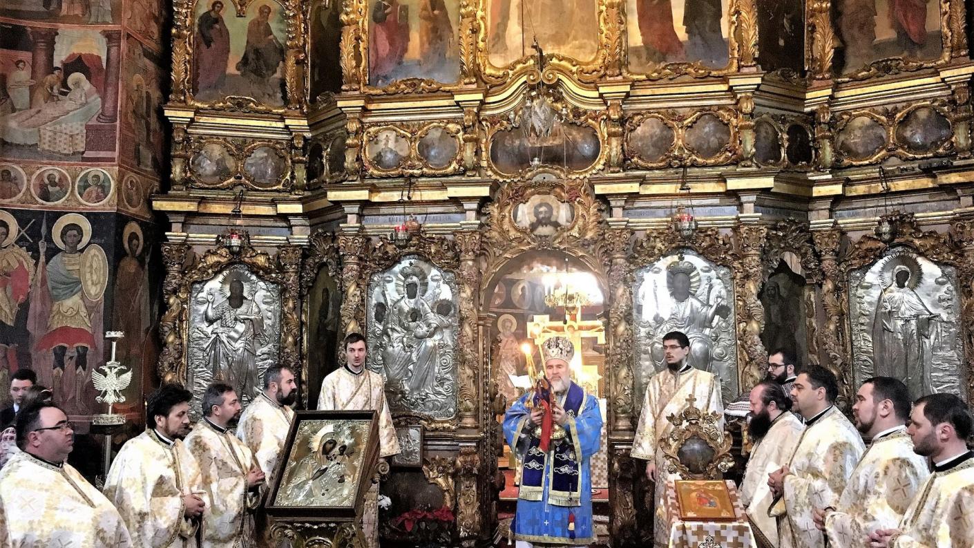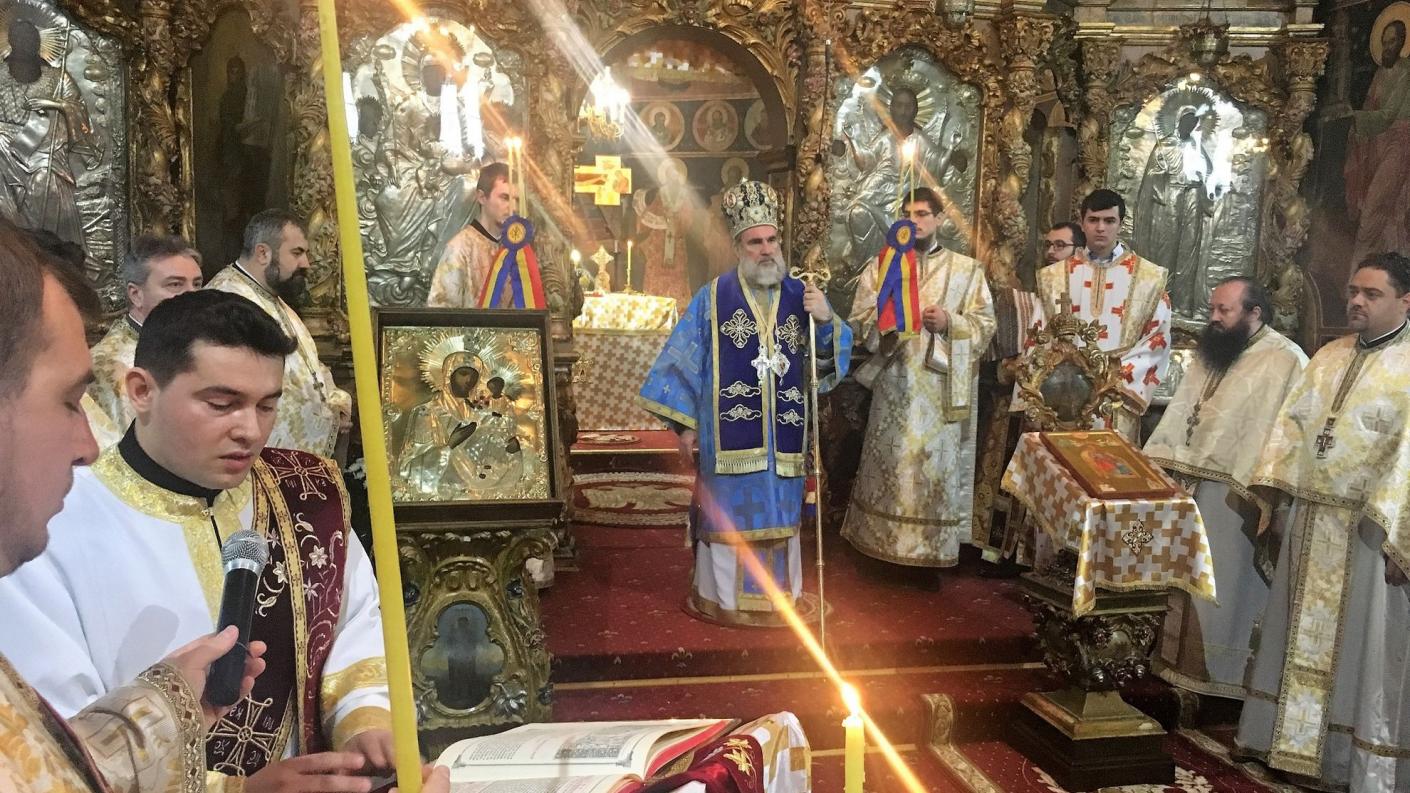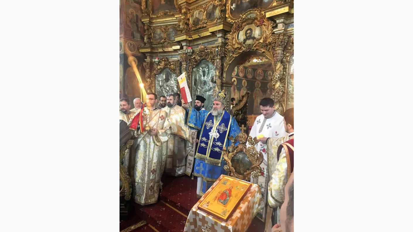 Arhipăstorul, înconjurat de un sobor impresionant de preoți și diaconi romașcani, a săvârșit Dumnezeiasca Liturghie, în cadrul acesteia fiind pomeniți făuritorii Unirii din anul 1859.