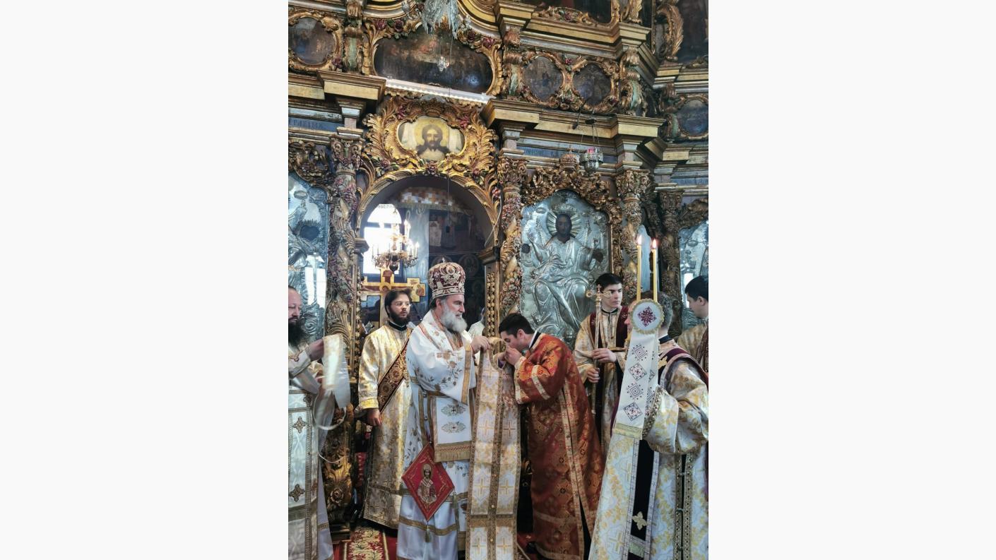 La momentul specific din Liturghie, Părintele Arhiepiscop Ioachim a oficiat hirotonia întru preot a diaconului Dragomir Nicușor Dănuț pe seama parohie Conțești, protopopiatul Sascut.