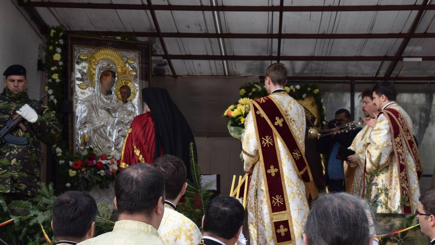 Zilele trecute, la Biserica Militară din Bacău, a fost adusă Icoana Maicii Domnului Prodromiţa (Înaintemergătoarea), o reproducere a Icoanei făcătoare de minuni „nefăcută de mână omenească”, din tezaurul Schitului românesc Sfântul Ioan Botezătorul – Prodromu de la Sfântul Muntele Athos, supranumit Grădina Maicii Domnului.