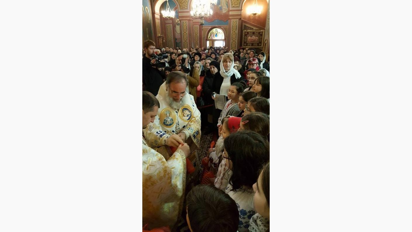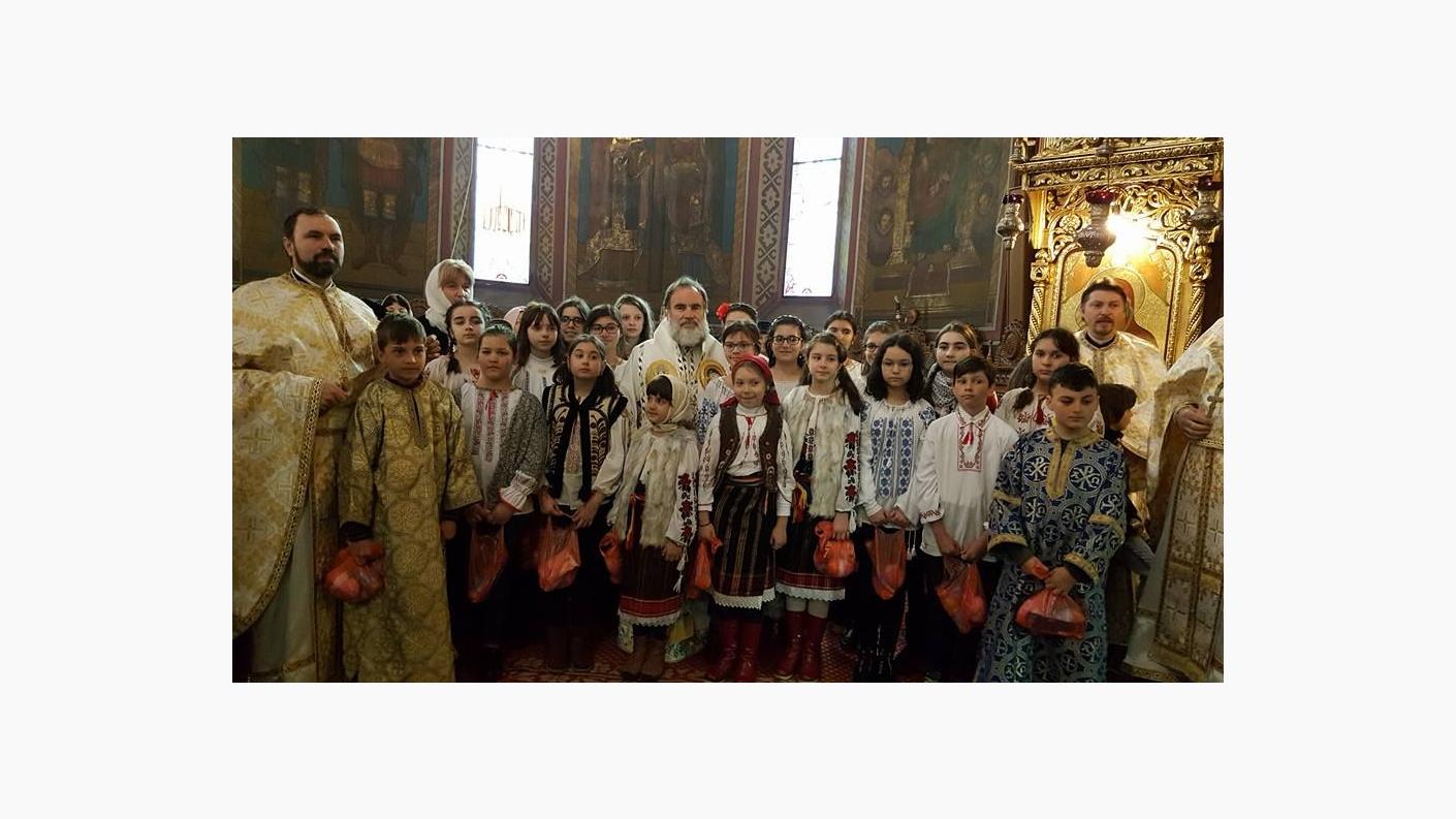 Slujba a fost înfrumusețată de glasurile cristaline ale copiilor din corul Lira al Școlii „Al. I. Cuza”, care, sub atenta îndrumare a doamnei inspector prof. Marinela Potârniche, au interpretat o serie de cântări specifice perioadei prepascale, încheind cu intonarea imnului „Hristos a înviat!”, care a însuflețit întreaga biserică. Ei au primit din partea IPS Părinte Arhiepiscop Ioachim daruri, care i-au bucurat pe cei mici veniți la biserică în această zi din vacanță.