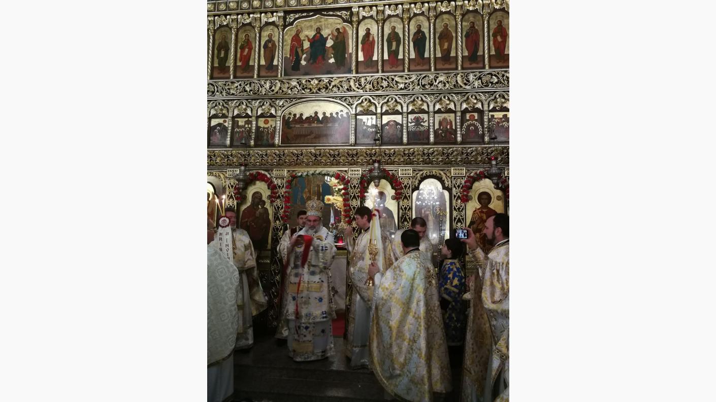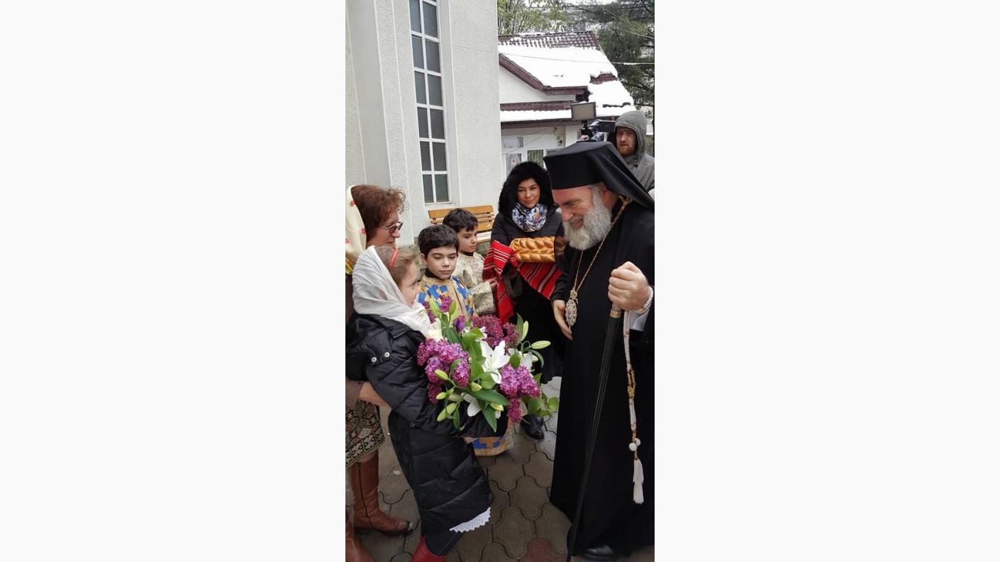 La zi de mare sărbătoare, în Săptămâna luminată, IPS Părinte Arhiepiscop Ioachim a fost așteptat și întâmpinat cu bucurie de credincioșii parohiei Sfântul Gheorghe. Slujba Sfintei Liturghii arhierești a fost săvârșită de un sobor de preoți și diaconi, sub protia chiriarhului, în prezența a numeroși creștini veniți să se închine icoanei făcătoare de minuni a Maicii Domnului adusă de la Mănăstirea Giurgeni cu ocazia hramului.