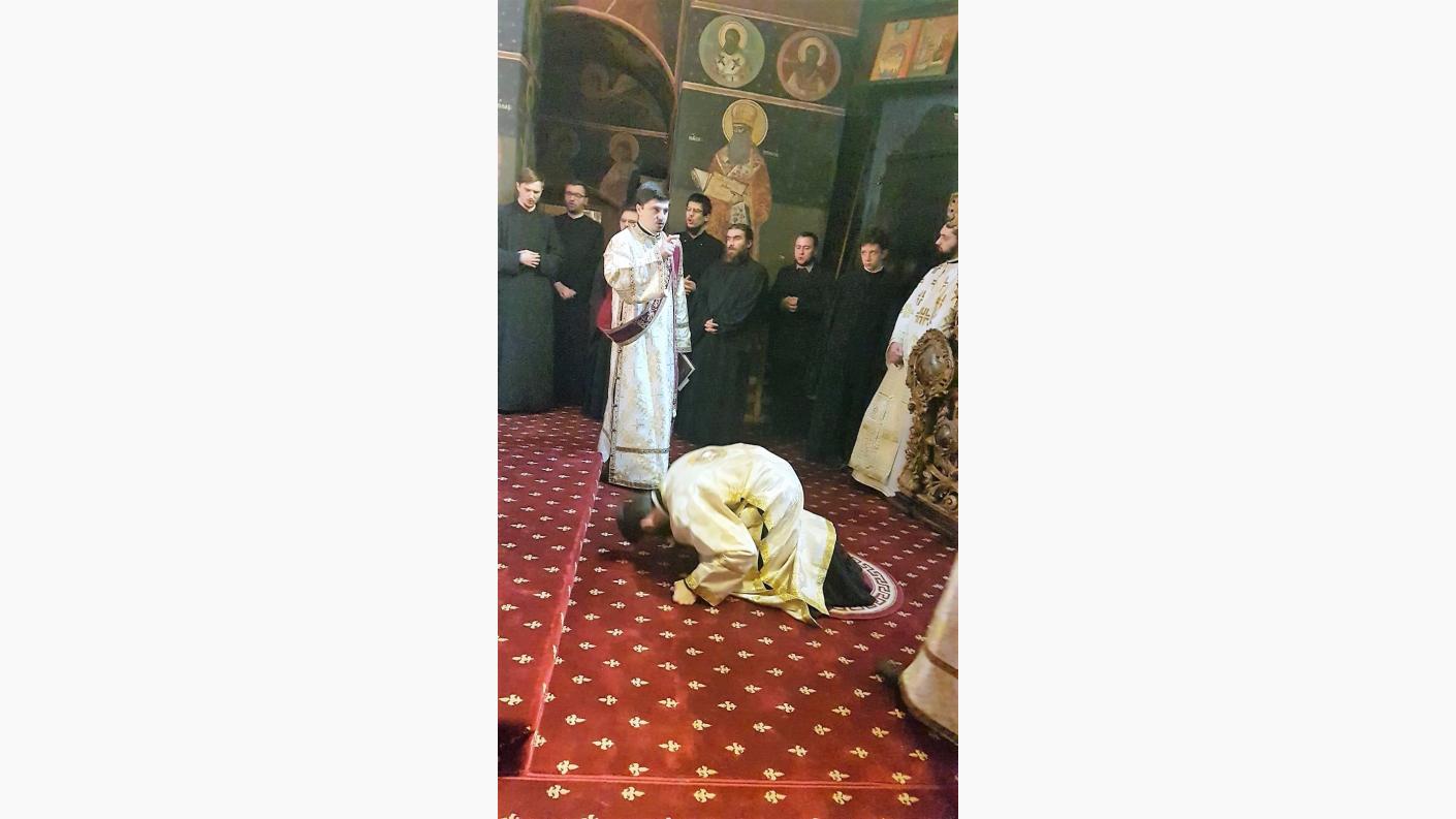 În cadrul slujbei Părintele Arhiepiscop Ioachim a hirotonit în treapta de diacon pe tânărul teolog Dănuț Ion pentru parohia cu hramul Nașterea Maicii Domnului din localitatea Ferăstrău, comuna Oituz din Protoieria Onești, acesta având și misiunea de a sprijini duhovnicește și de a realiza terapia spirituală pentru beneficiarii serviciilor oferite de Așezământul Social-Filantropic „Sfântul Ștefan cel Mare” de la Hârja. Răspunsurile liturgice au fost date de către membrii corului psaltic Diaconia.