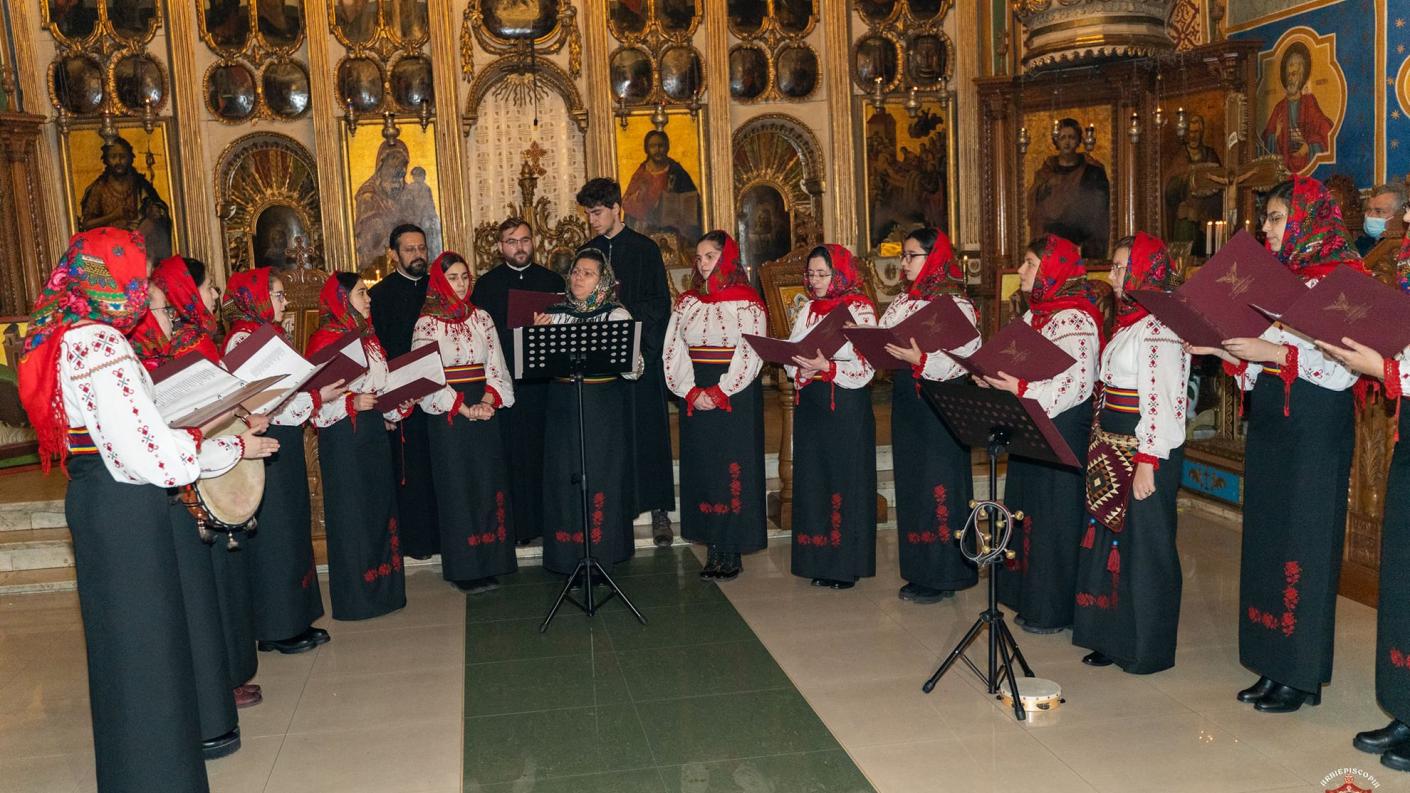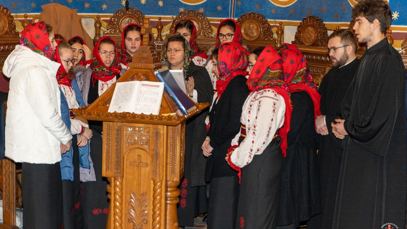 Duminica de astăzi face deja începutul sărbătorii Crăciunului pentru că în calendar o regăsim numită Duminica Sfinților Strămoși, în acest an fiind corelată cu sărbătoarea închinată Sfântului Ierarh Spiridon, făcătorul de minuni. Sfântul Spiridon a avut mai ales o simțire teologică înaltă, întărind prin viața sa cuvântul lui Evagrie Ponticul care spune că nu cel care studiază teologia intră în dialog cu Dumnezeu, ci cel care se roagă. Am putea spune că și tinerele care fac parte din acest cor urmează aceeași trăire, ele nefăcând misiune pentru că sunt studente la Facultatea de Teologie, ci pentru că au plecat spre Hristos dintr-o credință lăuntrică lucrătoare prin iubire. Iubind pe Hristos, ele transmit un mesaj care vorbește despre teologia trăită personal.