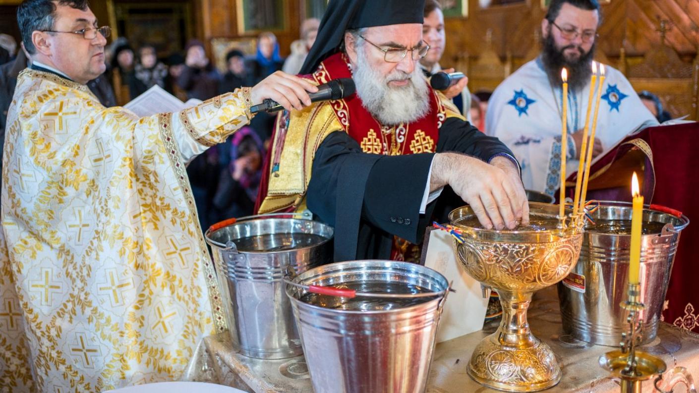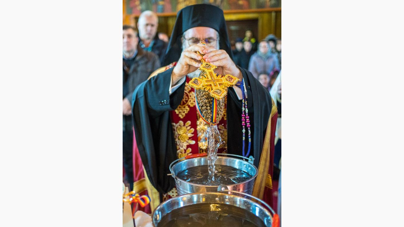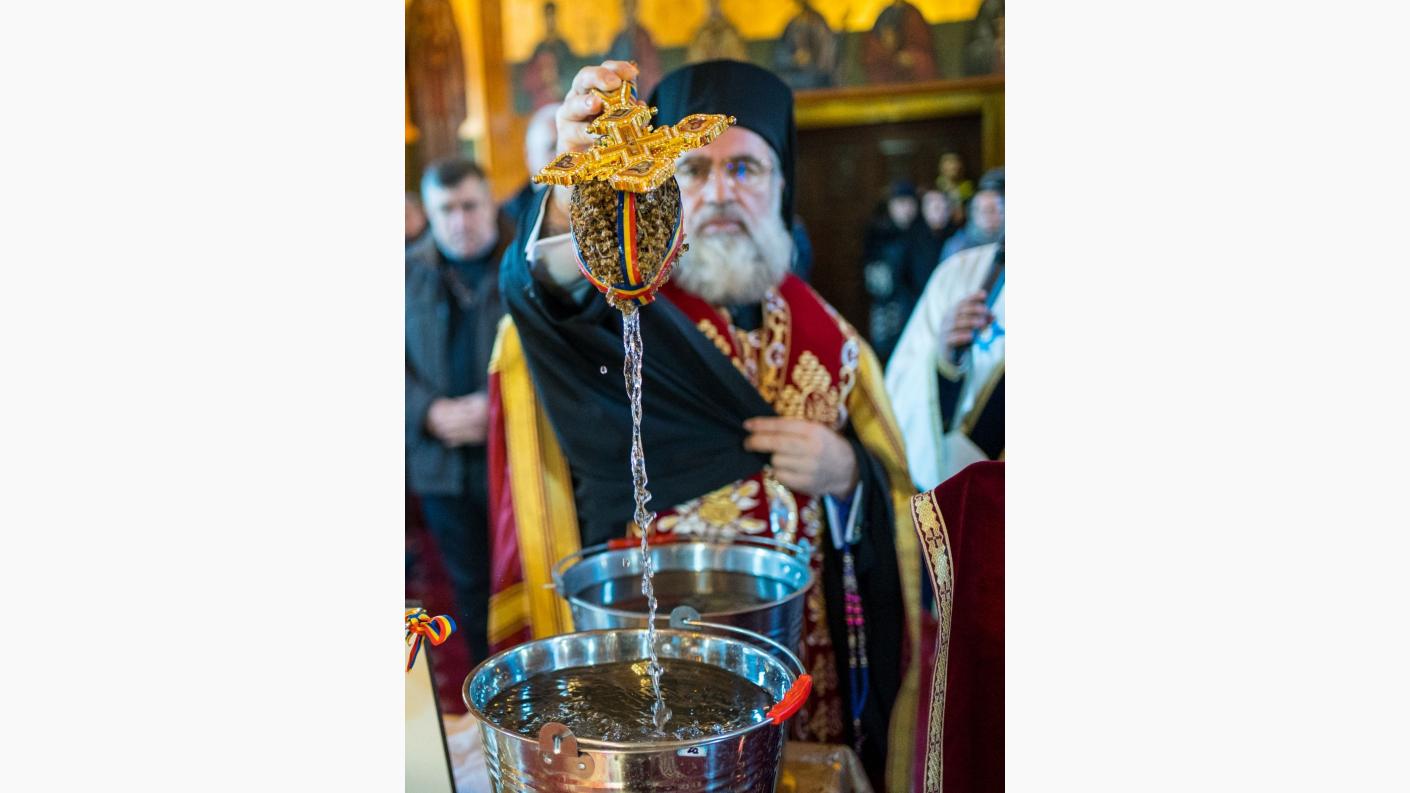 După oficierea slujbei euharistice s-a săvârșit sfințirea cea Mare a Apei, numită în popor Agheasma Mare.