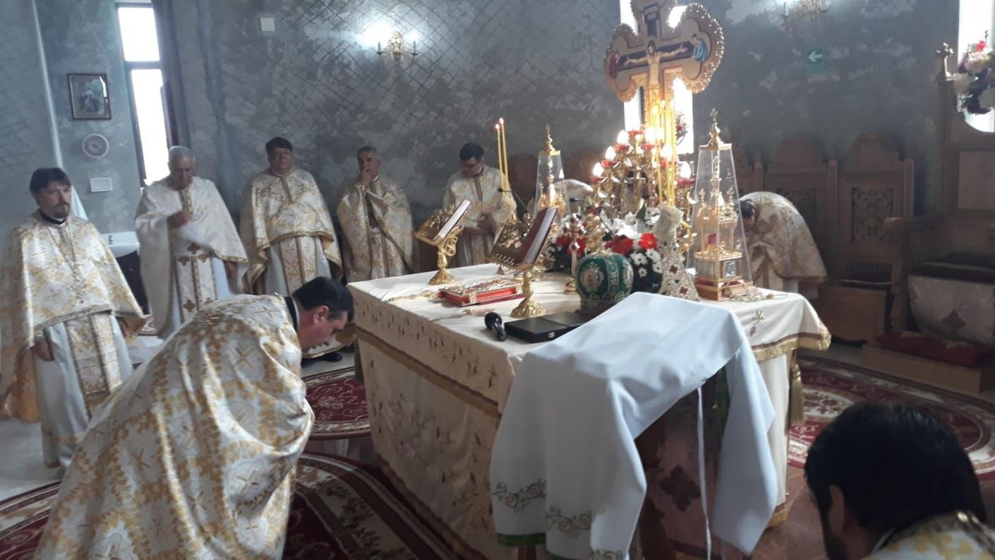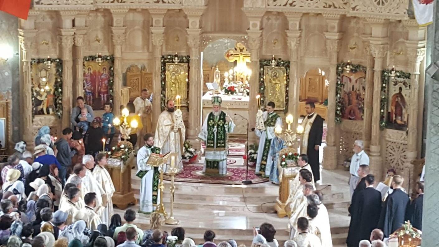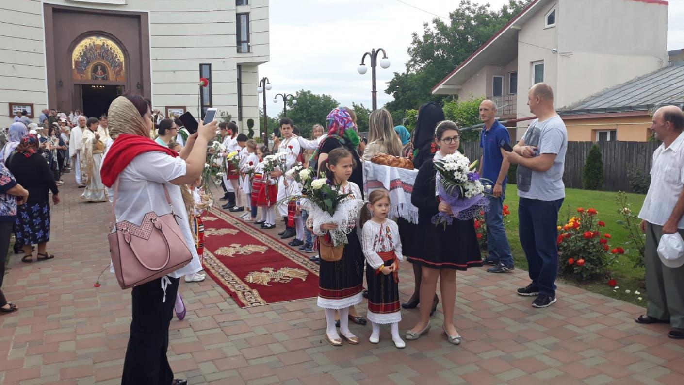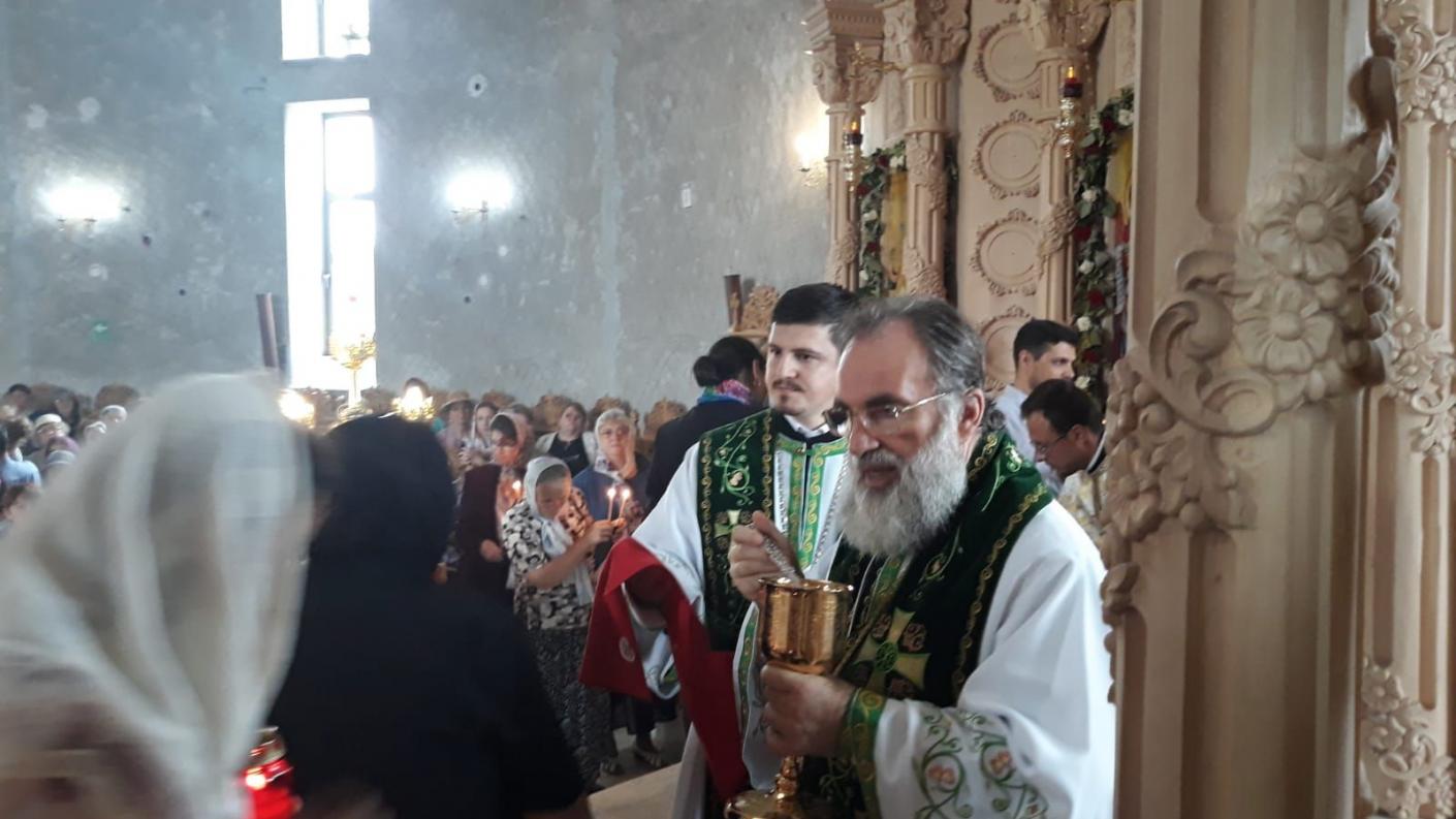 Apoi, duminică, 27 mai, încă din primele ore ale dimineții, biserica ce poartă hramul marii sărbători a Rusaliilor s-a arătat a fi neîncăpătoare pentru credincioșii care au venit special pentru acest înălțător eveniment al acestei parohiei. IPS Părinte Ioachim a slujit Sfânta Liturghie împreună cu un sobor de preoți în frunte cu părintele Constantin Busuioc, prototop al Bacăului, alături de mulțime de credincioși. Fiii parohiei au primit, într-un cadru festiv, pe Ierarhul locului, evindențiind tradiția și ospitalitatea românescă primită de la înaintași.