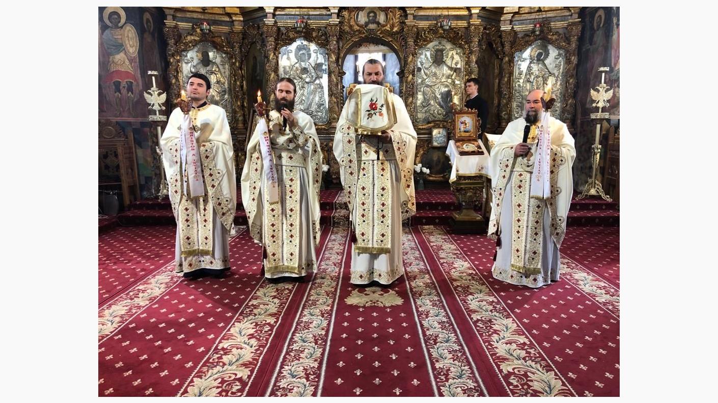 La slujbă, Chiriarhul a fost înconjurat de părintele Arhimandrit Pimen Costea, Vicar Eparhial, de părintele Arhimandrit Serafim Huzdup, mare ecleziarh, precum și de soborul preoților și diaconilor.