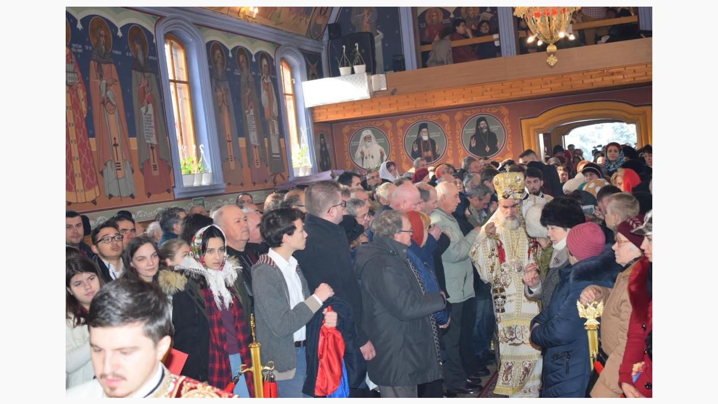 Astăzi ne-am oprit duhovnicește în această oază de spiritualitate, în acest spațiu sacru, care este poartă a cerului și locul de întâlnire cu Dumnezeu și ne-am odihnit în Duhul Sfânt. Noi considerăm că frățiile voastre sunteți pietre vii din care se constituie trupul tainic al Mântuitorului nostru Iisus Hristos. Astăzi a fost o zi de liniște ruptă parcă din timpul lui Dumnezeu, și văzându-vă focalizați cu credința și cu ochii minții către altarul acesta unde s-a săvârșit Sfânta și Dumnezeiasca Liturghie, înseamnă că nu ați trăit în timpul acesta pe care noi îl măsurăm cu ceasul, ci ați trăit în timpul lui Dumnezeu, cel care este un prezent continuu. Vă dorim încă de pe acum să aveți un hram binecuvântat, iar celor care poartă numele celor trei Sfinți Ierarhi le dorim multă sănătate, pace, liniște și alese bucurii și mângâieri duhovnicești.