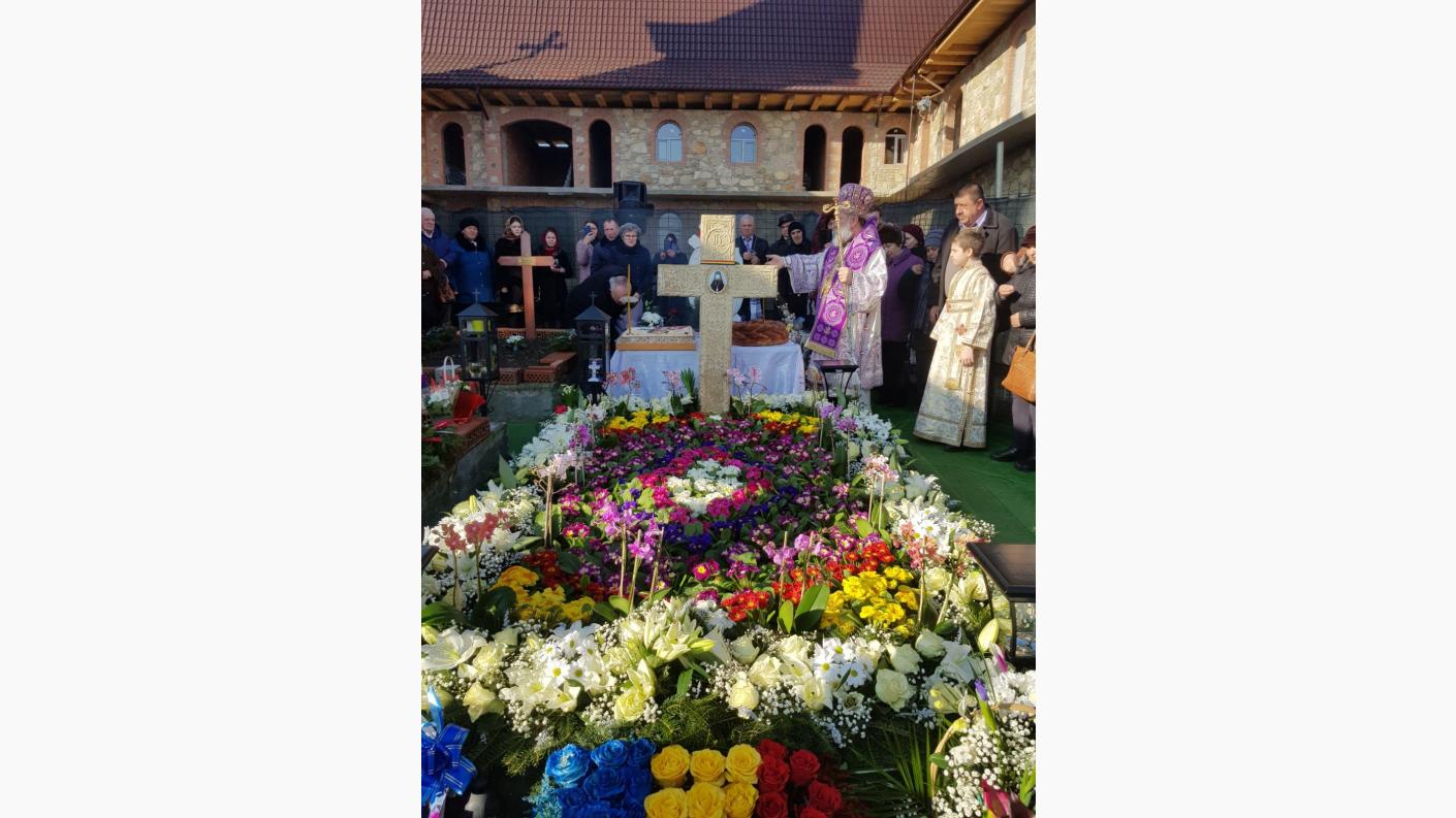 După Liturghie a avut loc la mormântul împodobit cu flori rânduiala Parastasului pentru părintele Antonie, fostul stareț al vetrei monahale de aici.
