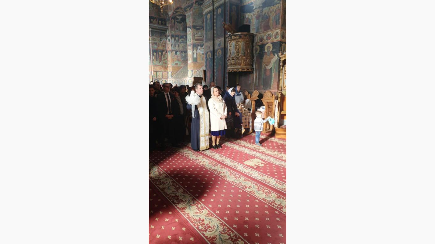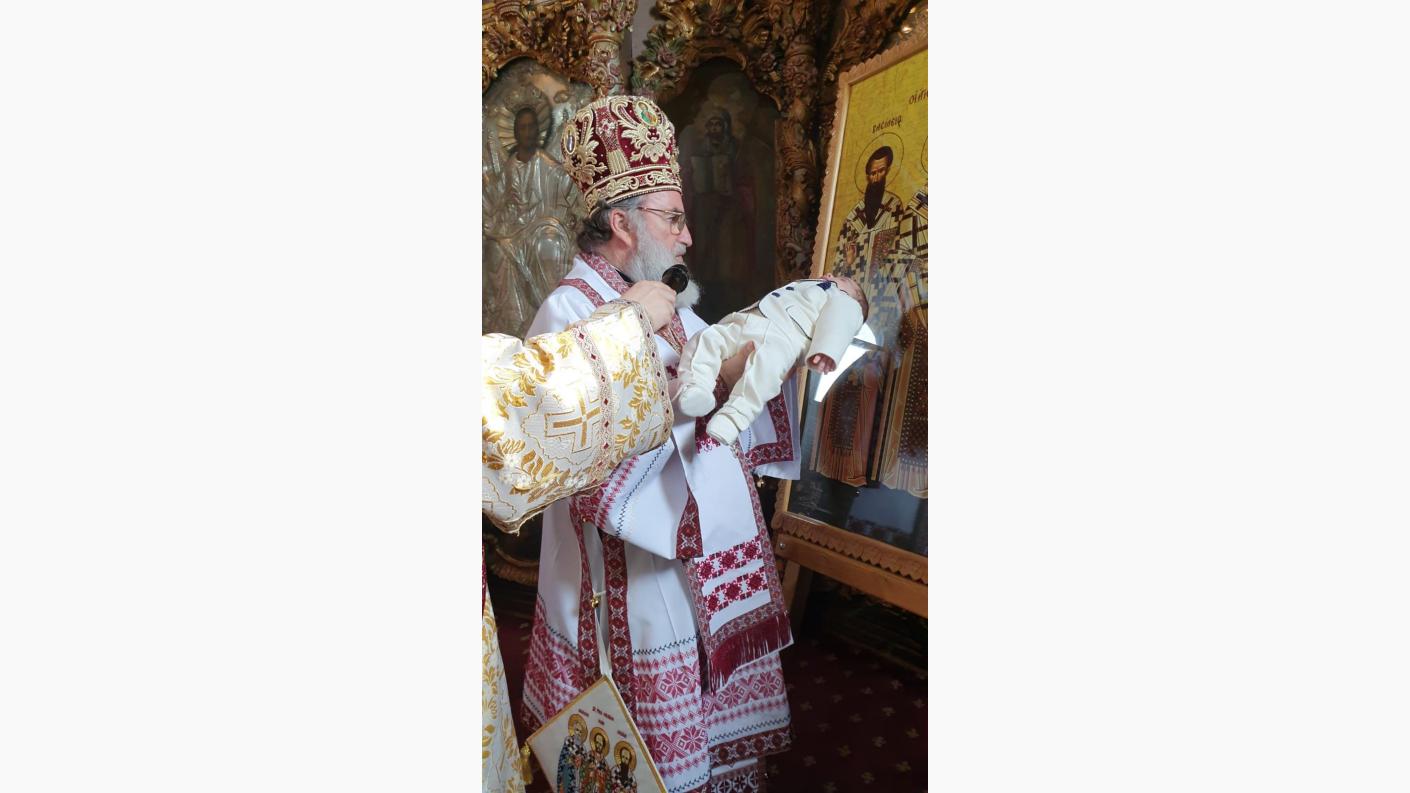 Înaltpreasfințitul Părinte Ioachim, Arhiepiscopul Romanului și Bacăului, alături de părintele Arrhimandrit Pimen Costea, vicar eparhial, de părintele Arhimandrit Serafim Huzdup, mare ecleziarh, și împreună cu un sobor de preoți și diaconi, a săvârșit în ziua de pomenire a Sfinților Vasile, Grigorie și Ioan, Sfânta Liturghie baptismală, la Catedrala Arhiepiscopală din municipiul Roman, în cadrul căreia a botezat pe pruncul Gabriel, fiul familiei preotului Cristinel Vasile Lungu, preot la Parohia Căiuți din Protopopiatul Onești.