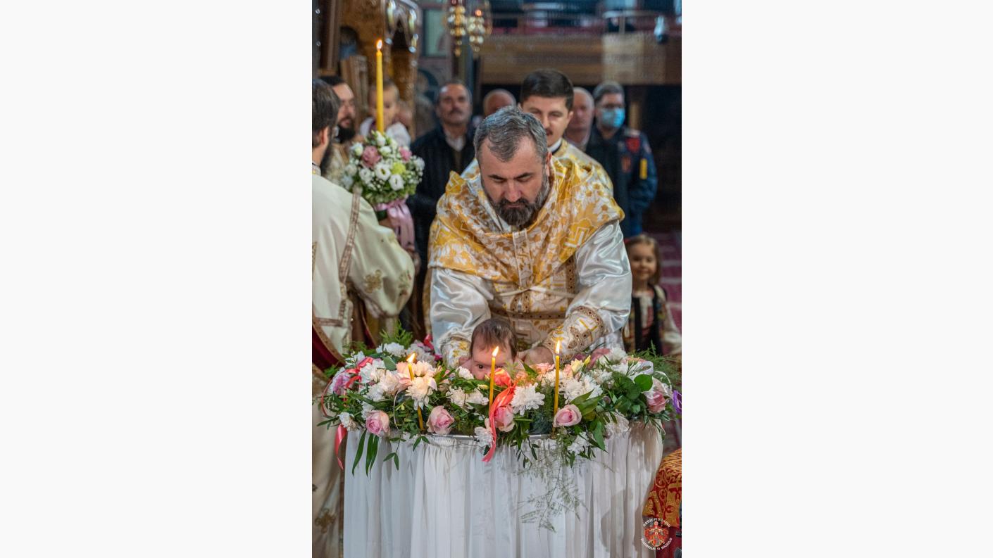 În contextul anului omagial închinat pastorației familiei, Înaltpreasfințitul Părinte Ioachim, Arhiepiscopul Romanului și Bacăului, alături de părintele Ioan Bârgăoanu, protopop de Onești, și împreună cu un sobor de preoți și diaconi, a săvârșit Sfânta Liturghie baptismală, la Catedrala Arhiepiscopală din municipiul Roman, în ziua când Biserica prăznuiește aducerea moaștelor Sfântului Mare Mucenic Gheorghe purtătorul de biruință, în cadrul căreia a botezat pe prunca Ecaterina, fiica familiei preotului Simeon Purice, preot paroh la Parohia Grozești din Protopopiatul Onești.