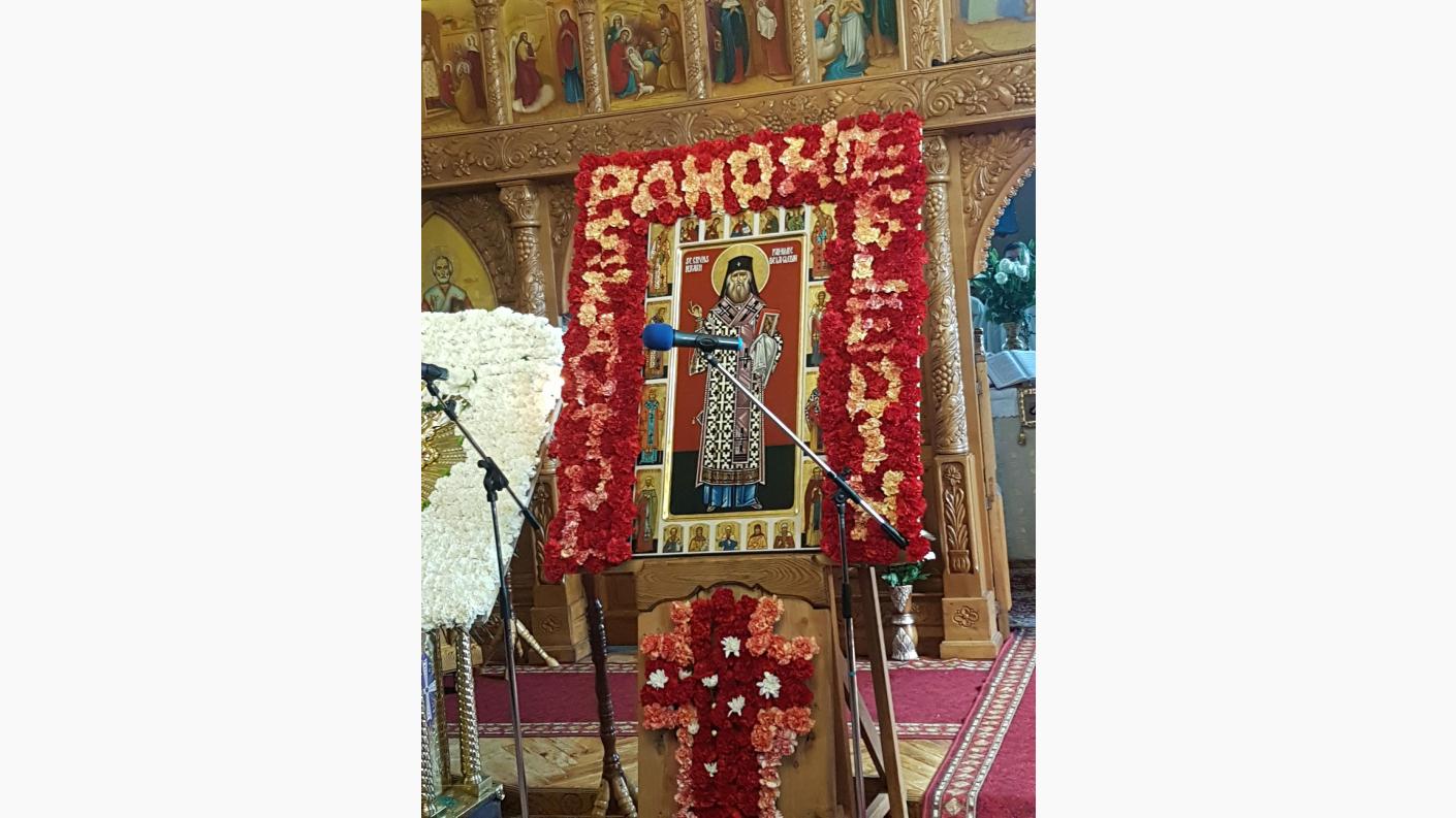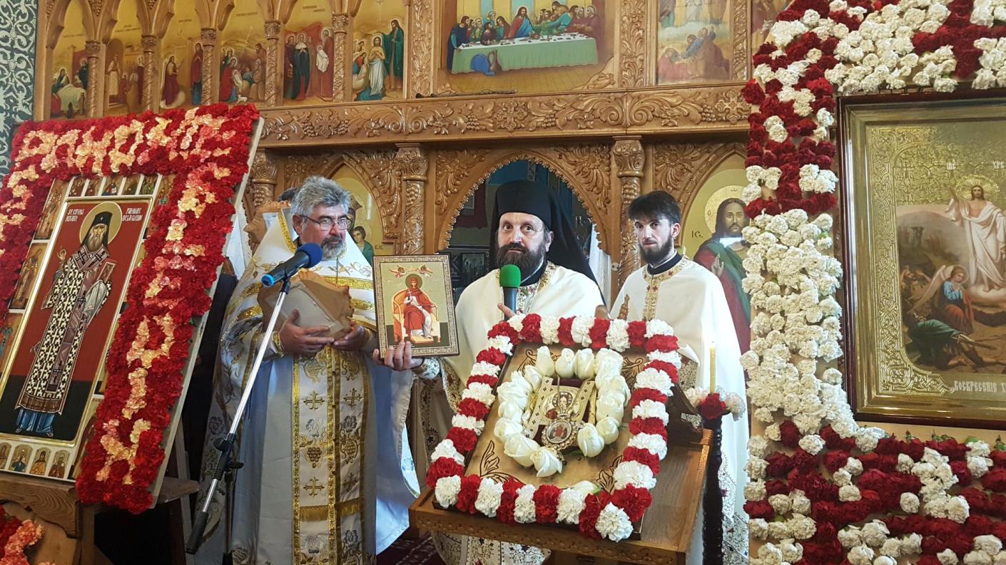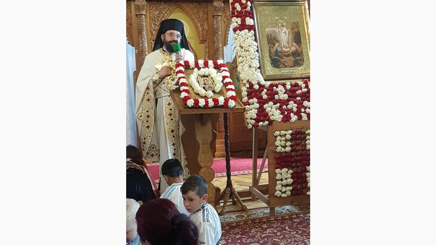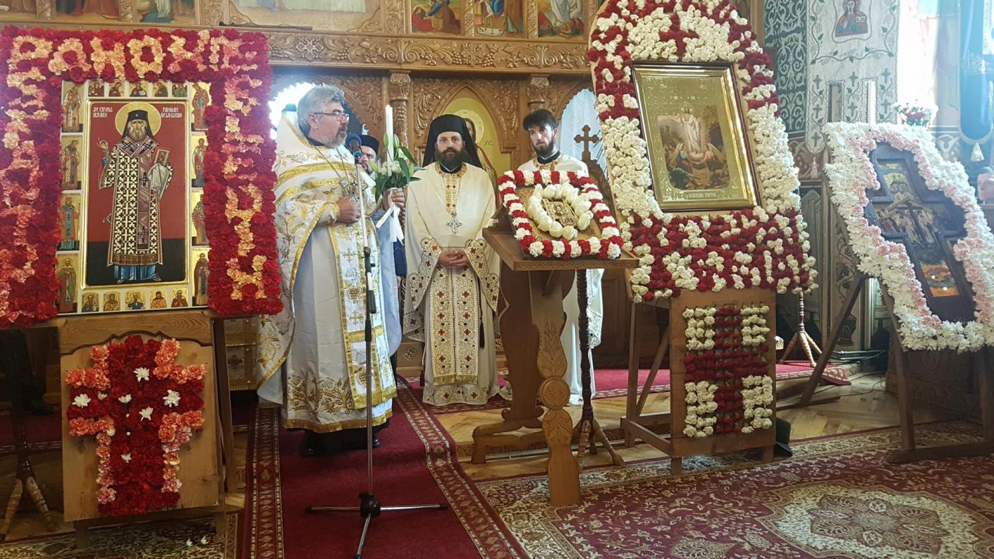 La final, părintele arhimandrit Andrei Ioniţă a transmis celor prezenți un mesaj de prietenie și un salut de frățietate din partea IPS Părinte Ioachim, Arhiepiscopul Romanului și Bacăului. Menționăm faptul că textele ce alcătuiesc slujba închinată marelui ierarh Pahomie de la Gledin, unul dintre cei patru sfinți care au păstorit pe scaunul vlădicesc din Eparhia Romanului și Bacăului, îl au ca autor pe Înaltpreasfințitul Părinte Arhiepiscop Ioachim. La slujbă au participat oficialități locale, fii ai satului, precum și numeroși credincioși și pelerini.