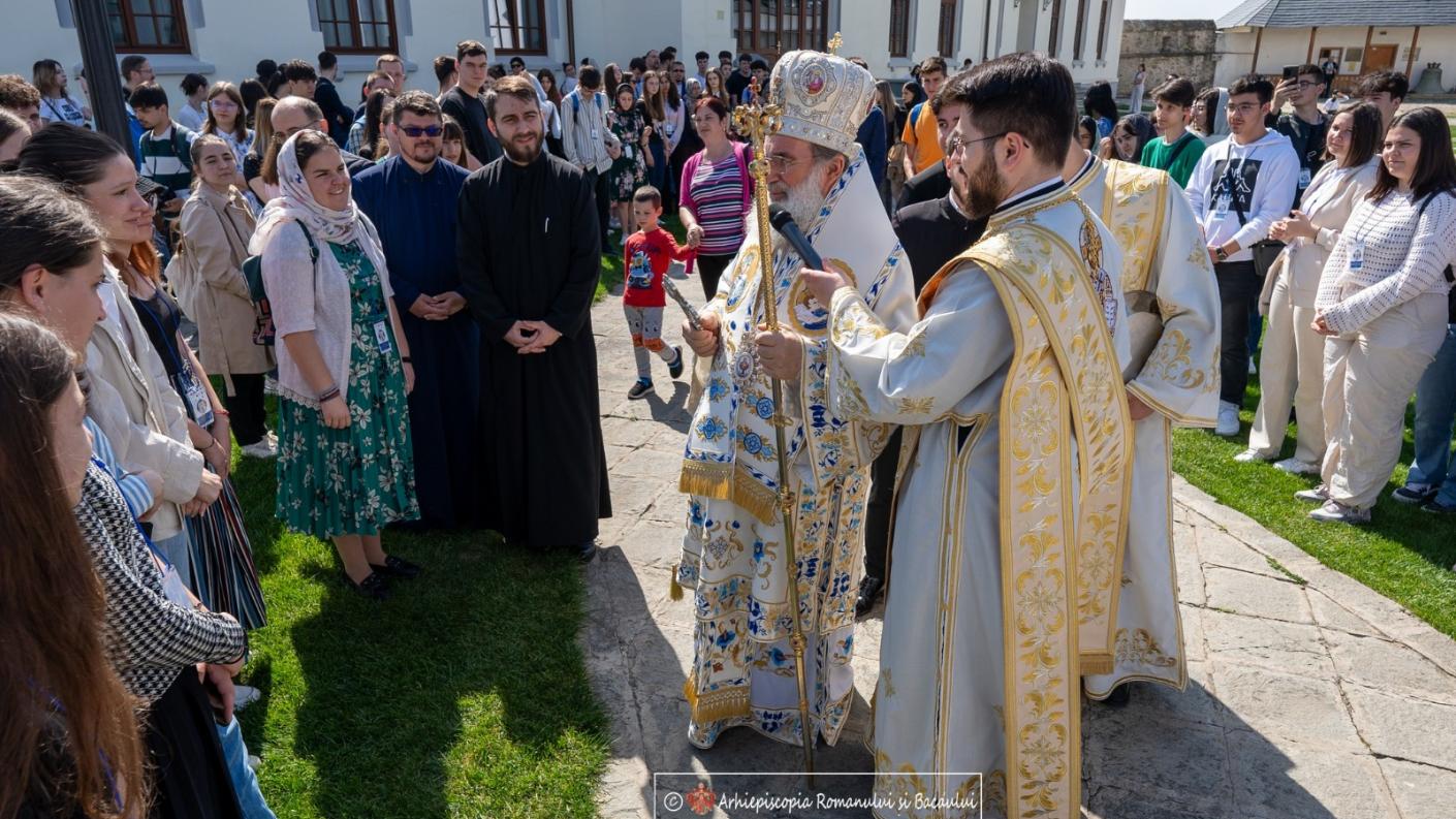 Vineri, 25 aprilie 2025, în cea de-a treia zi a programului Olimpiadei Naționale de Religie, elevii olimpici au participat la Sfânta Liturghie, în preajma Altarului de vară al Centrului Eparhial dar și la un pelerinaj ce le-a oferit ocazia rară de a cunoaște mai în profunzime patrimoniul religios și cultural al Arhiepiscopiei Romanului și Bacăului, gazda competiției din acest an.