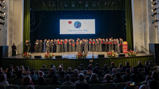 Într-o seară de profundă semnificație spirituală și culturală, vineri, 12 decembrie 2025, la Teatrul de Vară „Radu Beligan” din Bacău, Arhiepiscopia Romanului și Bacăului, sub binecuvântarea Înaltpreasfințitului Părinte Arhiepiscop Ioachim, a oferit comunității un magnific concert de colinde, reprezentând darul Ierarhului pentru sărbătoarea Crăciunului. Evenimentul, la care a luat parte și Preasfințitul Teofil Trotușanul, Episcop Vicar al Arhiepiscopiei Romanului și Bacăului, a fost prezentat cu măiestrie de Părintele Ciprian Ioan Ignat, evenimentul constituindu-se într-o veritabilă epifanie muzicală, reunind diversele expresii corale ale Bisericii din întreaga eparhie.