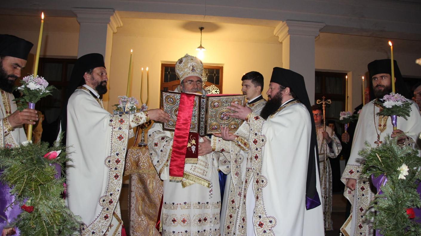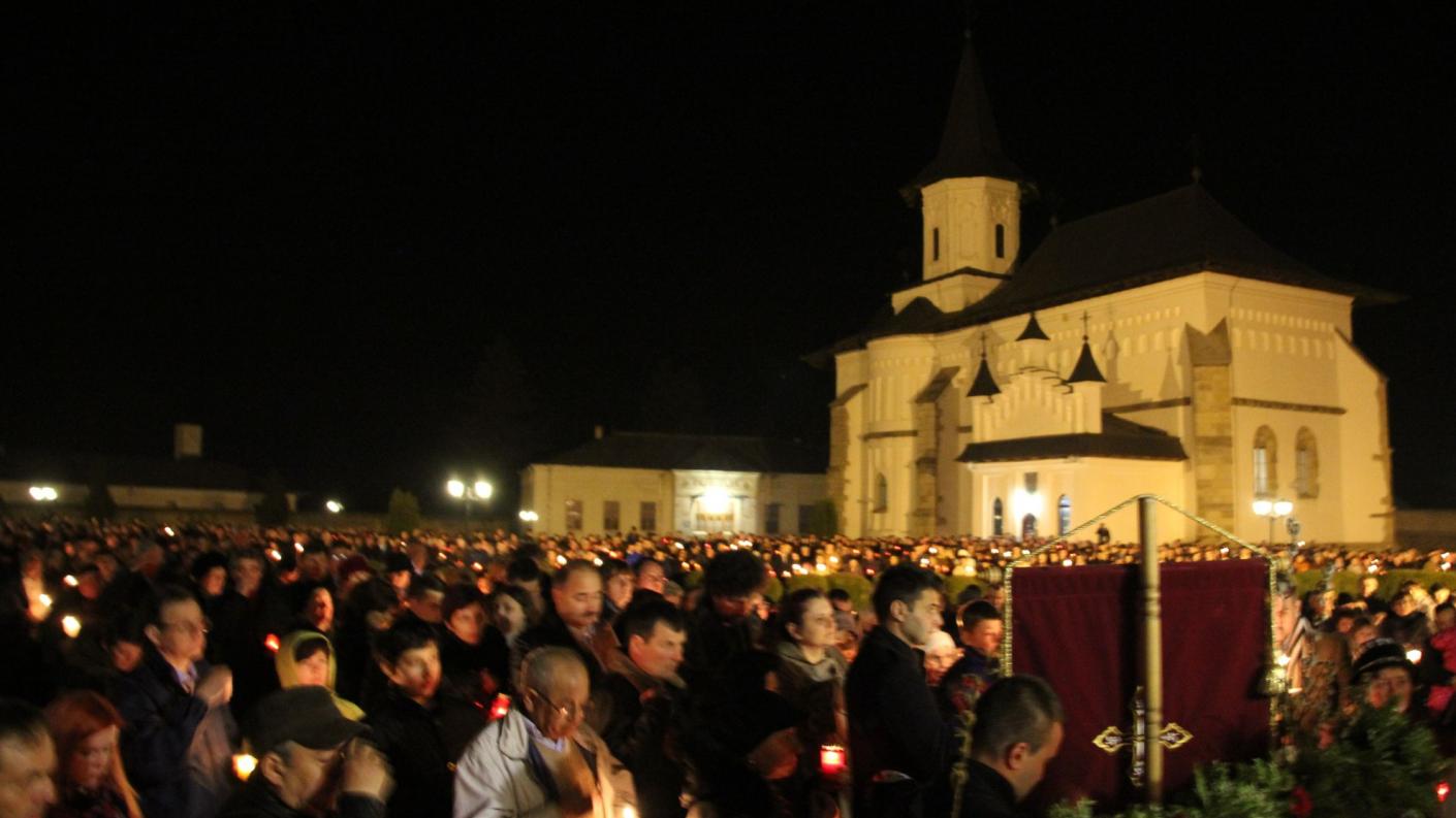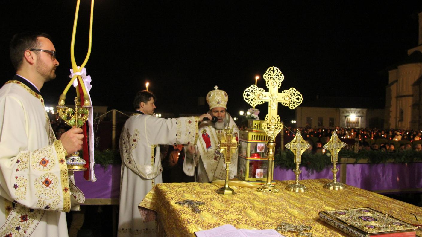 La ora 23, la Catedrala arhiepiscopală din Roman a început Slujba Utreniei, premergătoare Slujbei Învierii Domnului. La miezul nopţii, Înaltpreasfinţitul Părinte Arhiepiscop Ioachim, din altarul Catedralei arhiepiscopale din Roman, a adresat credincioşilor îndemnul pascal „Veniţi de luaţi lumină!”. Credincioşii prezenţi au avut astfel bucuria de a primi din Lumina Sfântă de la Ierusalim, pe parcursul procesiunii de la Catedrala arhiepiscopală până la podiumul special amenajat în incinta ansmblului arhitectural muşatin. De aici s-a înălţat salutul pascal „Hristos a înviat!”, rostit de chiriarhul locului, căruia mulţimea i-a răspuns într-un glas „Adevărat a înviat!”. În încheierea Slujbei Utreniei s-a dat citire Scrisorii pastorale a IPS Arhiepiscop Ioachim adresată clerului şi credincioşilor acestei de Dumnezeu păzite eparhii la sărbătoarea Învierii Domnului.