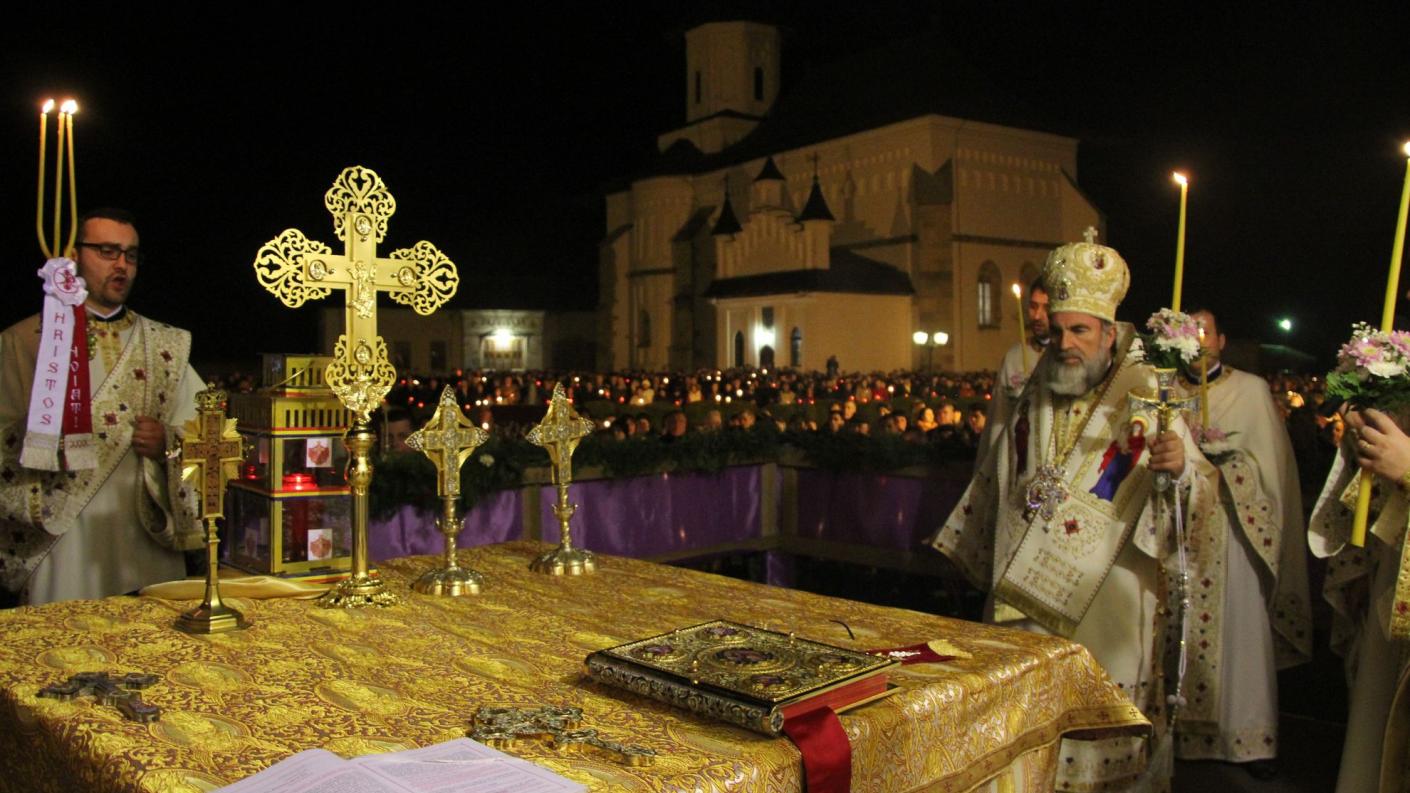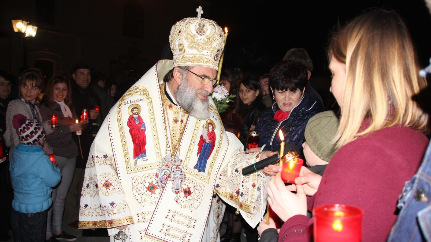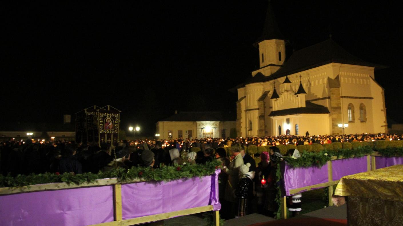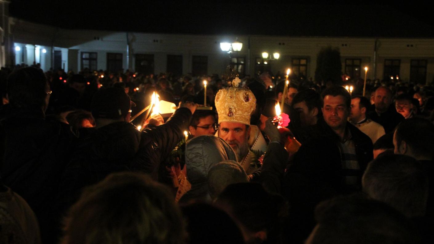 La ora 23, la Catedrala arhiepiscopală din Roman a început Slujba Utreniei, premergătoare Slujbei Învierii Domnului. La miezul nopţii, Înaltpreasfinţitul Părinte Arhiepiscop Ioachim, din altarul Catedralei arhiepiscopale din Roman, a adresat credincioşilor îndemnul pascal „Veniţi de luaţi lumină!”. Credincioşii prezenţi au avut astfel bucuria de a primi din Lumina Sfântă de la Ierusalim, pe parcursul procesiunii de la Catedrala arhiepiscopală până la podiumul special amenajat în incinta ansmblului arhitectural muşatin. De aici s-a înălţat salutul pascal „Hristos a înviat!”, rostit de chiriarhul locului, căruia mulţimea i-a răspuns într-un glas „Adevărat a înviat!”. În încheierea Slujbei Utreniei s-a dat citire Scrisorii pastorale a IPS Arhiepiscop Ioachim adresată clerului şi credincioşilor acestei de Dumnezeu păzite eparhii la sărbătoarea Învierii Domnului.