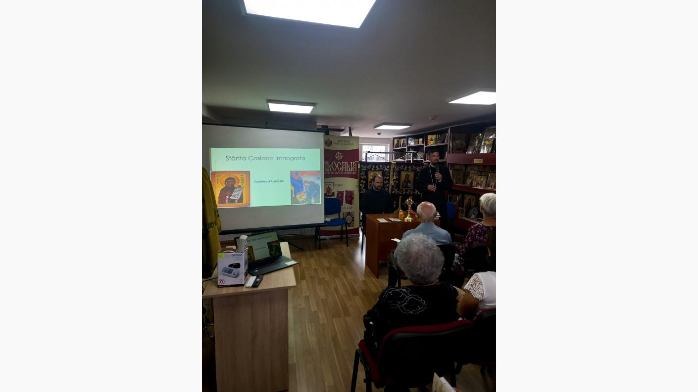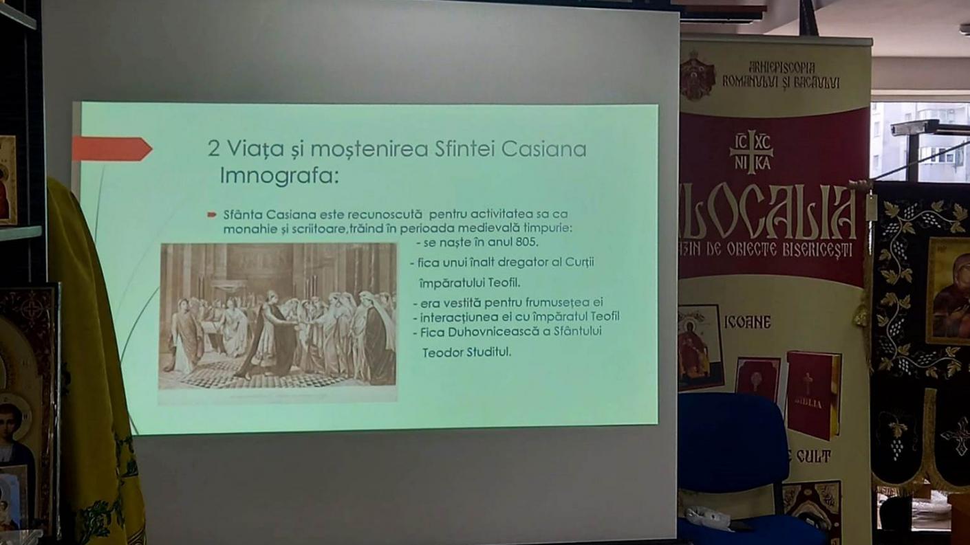 Cu acest prilej aniversar, părintele Alexandru Stanciu a creionat viața și moștenirea Sfintei Casiana Imnografa, vorbindu-le celor prezenţi despre activitatea sfintei ca monahie, scriitoare și compozitoare de imnuri și cântece de slavă lui Dumnezeu, dar și despre frumusețea ei neasemuită.