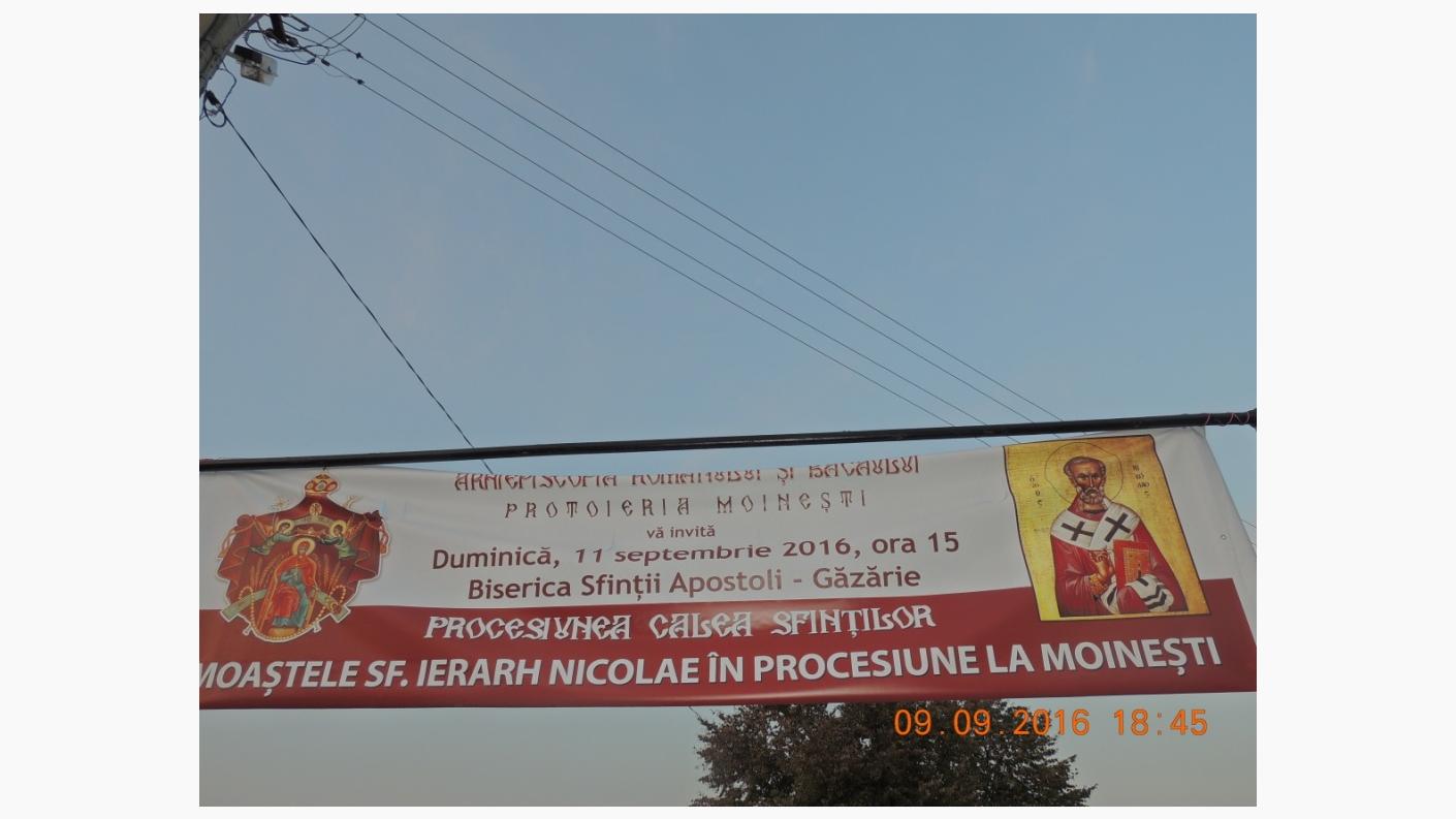 „Mulţumim Preafericitului Părinte Patriarh Daniel, cel ce a dat Înalta Binecuvântare, ca zilele acestea, cu prilejul Zilelor Duhovniceşti ale Protopopiatului Moineşti, să poposească aici în mijlocul nostru moaştele Sfântului Ierarh Nicolae. Aceleaşi gânduri de mulţumire le îndreptăm şi către ierarhul nostru Înaltpresfinţitul Părinte Ioachim, Arhiepiscopul Romanului şi Bacăului, pentru că Înaltpreasfinţia Sa, nu numai că ne-a dat binecuvântare pentru acest momemt deosebit, dar ne-a şi îndrumat în organizarea acestui eveniment. Nu întâmplător sunt prezente sfintele moaşte aici, când anul 2016 a fost dedicat de către Sfântul Sinod al Bisericii Ortodoxe ca „An omagial al educaţiei religioase a tineretului creştin ortodox”, iar Sfântul Ierarh Nicolae este prin excelenţă un ocrotitor al tinerilor, al copiilor, un ocrotitor al copilului din noi. Ce este mai frumos decât, ca la început de nou an şcolar elevii, profesorii şi noi toţi să primim binecuvântare sfântă prin mâna cea dreaptă a Sfântului Ierarh Nicolae?”, a menţionat în cuvântul său părintele protoiereu Costel Mareş.