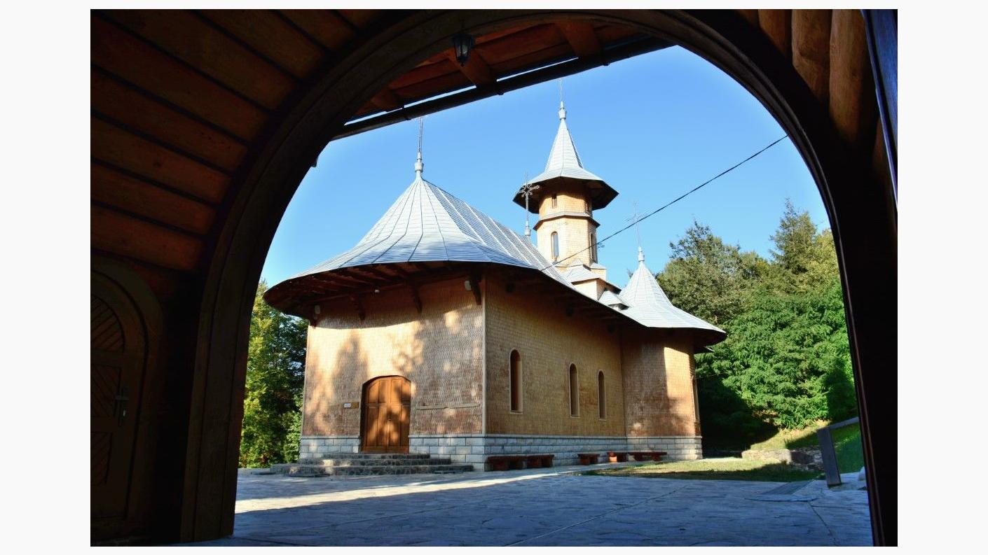 Împodobeşte cu zestrea ei duhovnicească Valea Trotuşului, între munţii Tarcăului şi Ciucului, pe traseul Comăneşti-Agăş, urmând de la şosea 2 kilometri de drum neasfaltat.