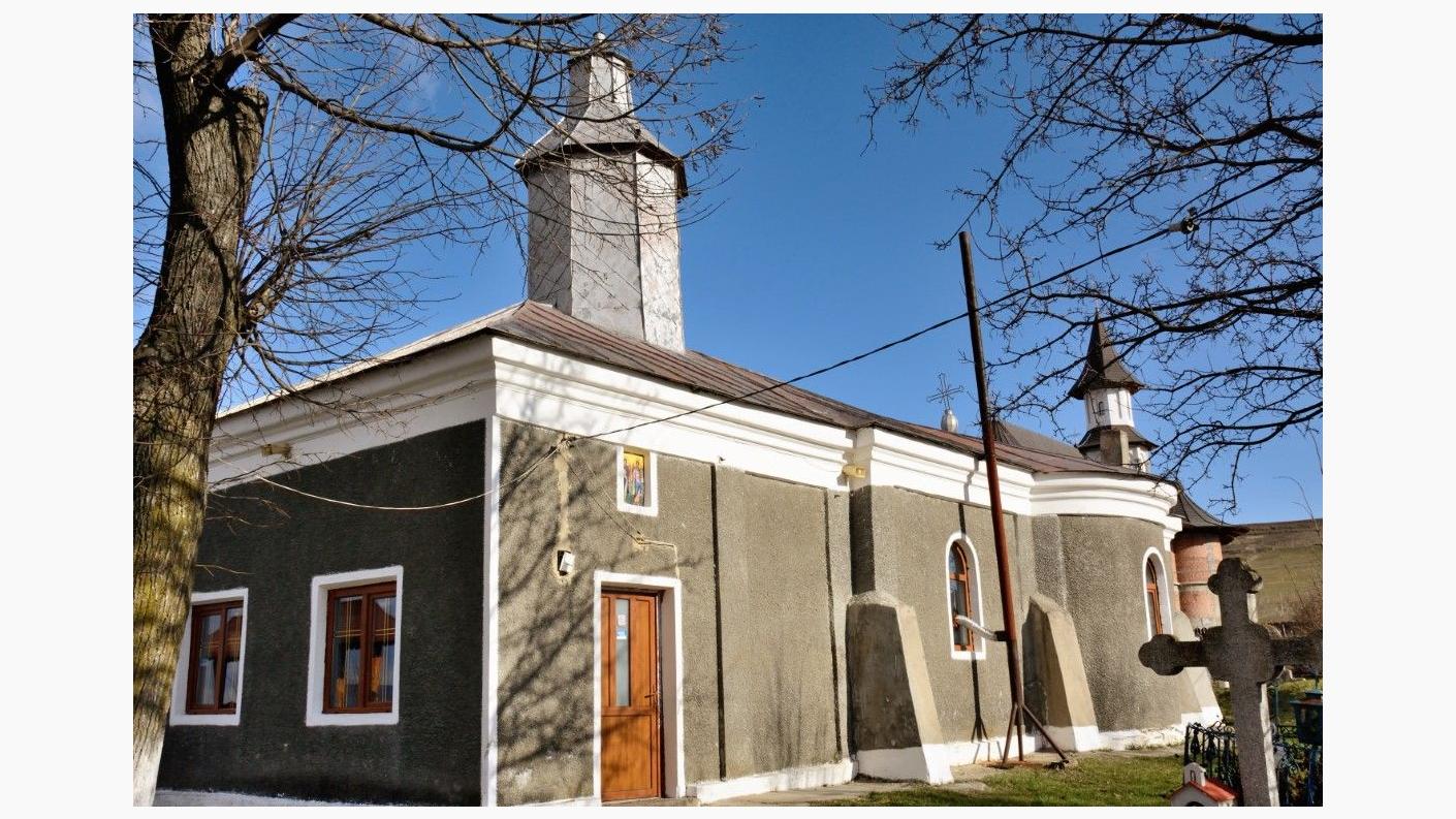 Biserica a fost ridicată în trei rânduri din cauza alunecărilor de teren, fiind ctitorită pe la anul 1889 de Preotul Ion Mihalache. Timp de aproape 30 de ani a fost filială de parohie, aparţinând de Biserica din comuna Meleşcani.