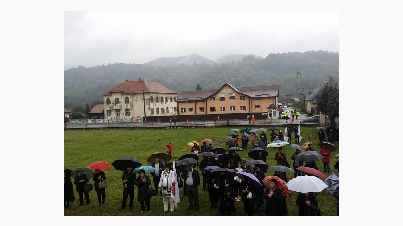În acordurile muzicii fanfarei Garnizoanei militare Bacău au fost depuse apoi coroane şi flori din partea instituțiilor de stat şi militare. A urmat procesiunea spre Cimitirul internațional al eroilor din satul Poiana Sărată, slujba de sfințirea a monumentului eroilor şi a cimitirului de către cei doi ierarhi și locuțiunile rostite de oficialitățile prezente la eveniment. Precizăm faptul că lucrările de refacere a acestor monumente şi a cimitirului în care-şi dorm odihna, deopotrivă, ostaşi români, austrieci, turci, ruşi, unguri şi germani au fost demarate la inițiativa şi cu sprijinul Arhiepiscopiei Romanului şi Bacăului, la care s-au adăugat: Oficiul Național pentru Cultul eroilor, Ministerul Apărării Naționale şi Primăria Oituz.