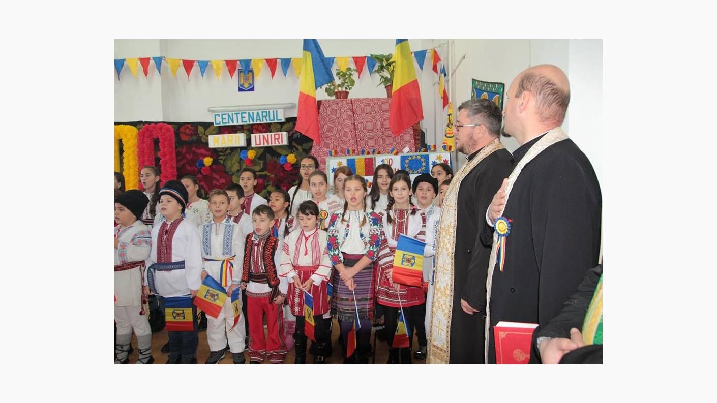Evenimentul a continuat cu slujba de Te Deum săvârșită de preoții prezenți, apoi, elevii școlii din localitate, coordonați de cadrele didactice, sub îndrumarea doamnei Director Valeria Pârțac, au susținut un program artistic specific momentului, cu cântece și poezii patriotice, care au pus în lumină curajul și jertfa făuritorilor Marii Uniri.