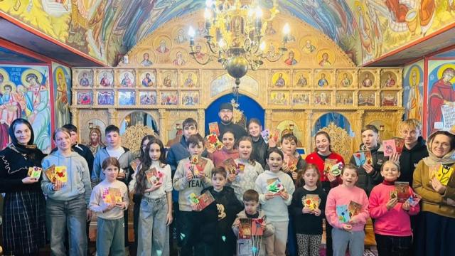 În semn de mulțumire pentru dragostea pe care copiii o arată doamnelor din parohie, Sectorul Colportaj al Arhiepiscopiei Romanului și Bacăului, prin părintele inspector Marian Gliga, a oferit acestora cărți și iconițe.