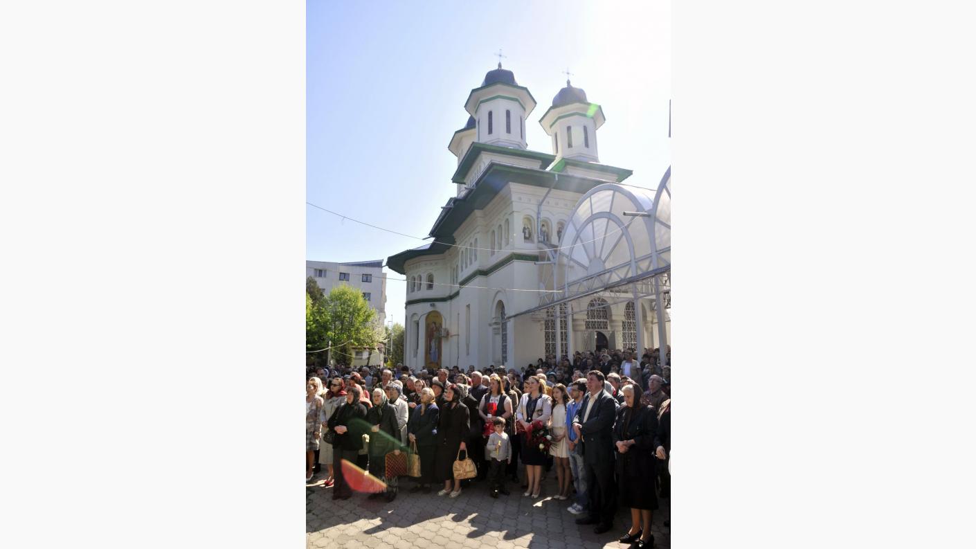 Câteva sute de credincioși băcăuani au participat la Dumnezeiasca Liturghie oficiată duminică, 26 aprilie, de Înaltpreasfințitul Părinte Arhiepiscop Ioachim la biserica ”Sf. Gheorghe” din municipiul Bacău. După citirea Sfintei Evanghelii, ierarhul a ținut un cuvânt de învățătură în care, evidențiind curajul și credința femeilor mironosițe a căror prăznuire se face în această zi, a subliniat importanța femeii creștine în viața familiei și a societății în general. La finalul slujbei, Înaltpreasfinția Sa a oficiat slujba de sfințire a apei, după care a sfințit icoana Sfântului Mare Mucenic Gheorghe, pictată în atelierul Mănăstirii ”Buna Vestire” din Tisa Silvestri, icoană ce îmbogățește patrimoniul acestei biserici. De asemenea, un alt moment important al acestei sărbători a fost premierea elevei Ioana Barcan, distinsă cu premiul I la faza națională a Olimpiadei de Religie, care învață la Școala nr. 10, una dintre instituțiile de învățământ ce derulează proiecte social-filantropice și cultural-educative în parteneriat cu parohia ”Sf. Gheorghe”, în raza căreia se află. Înaltpreasfinția Sa a oferit icoana Sfintei Parascheva și un premiu acestei eleve, felicitând-o totodată și pe profesoara de religie, doamna Irina Leonte, care a îndrumat-o. Tot cu acest prilej, ierarhul a distins cu icoane și diplome pe prof. Iulia Jicu, directoarea Școlii nr. 10, și pe prof. Clement Florescu, directorul Școlii ”George Bacovia”, pentru implicarea în susținerea valorilor culturale și spirituale ale Bisericii.