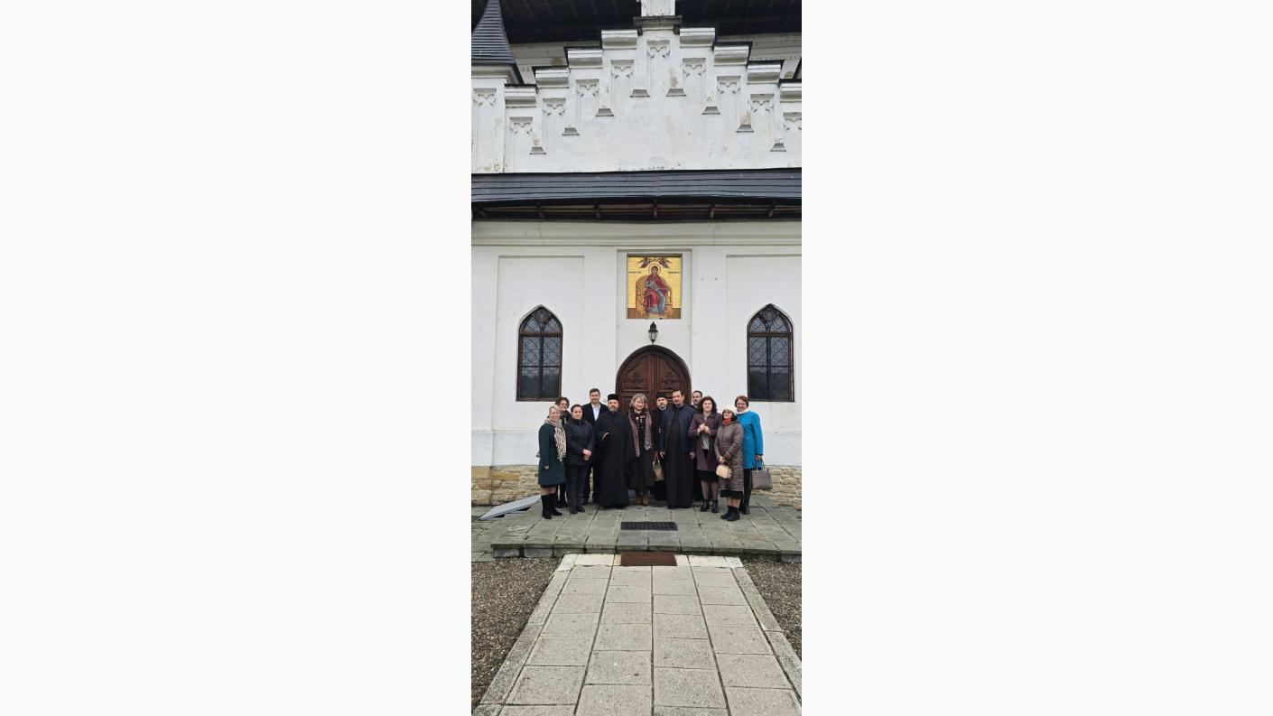 Înainte de lucrările activității propuse pentru această zi, profesorii au pornit pe urmele înaintașilor, vizitând Catedrala Arhiepiscopală cu hramul Sfânta Cuvioasă Parascheva – ctitorie mușatină, martor tăcut al vremurilor și ocrotitoare a celor care îi trec pragul. Părintele Arhimandrit Andrei, cadru didactic de discipline medicale pentru învățământ post-liceal sanitar la Liceul Teologic „Episcop Melchisedec”-Roman i-a întâmpinat cu blândețea unui povestitor care poartă în glas lumina secolelor. Astfel, preț de câteva minute, profesorii au pășit „pe calea bătătorită” a celor care, cu jertfă și credință, au clădit Moldova mușatină – de la Alexandru cel Bun și Petru Rareș, până la Mitropolitul Macarie al II-lea. Fiecare pas a fost asemenea unei file întoarse cu grijă dintr-o carte veche, în care parfumul pergamentului se împletea cu cel al rugăciunii.