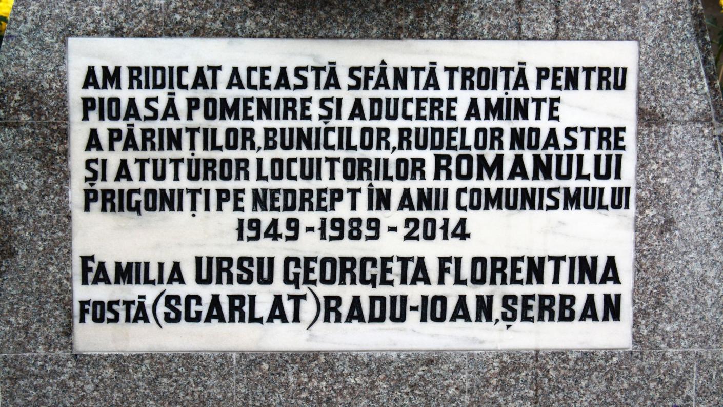 În prezența a numeroși romașcani, a reprezentanților autorităților județene și locale, dar și a cadrelor militare, astăzi, 10 decembrie, ora 10.00, Preasfințitul Părinte Episcop Ioachim Băcăuanul, înconjurat de un sobor de preoți și diaconi, a oficiat slujba de sfințire a unei troiței dedicate tuturor romașcanilor ”prigoniți pe nedrept în anii comunismului”. Monumentul, situat lângă Cimitirul Eternitatea din Roman, constituie un prinos de recunoștință adus de familia Ursu celor care s-au jertfit în lagăre, închisori și deportări pentru apărarea credinței, a libertății și demnității poporului român. În cuvântul rostit cu acest prilej, Preasfinția Sa a apreciat înalta ținută duhovnicească a ctitorilor acestei sfinte troițe, care constituie un însemn al iubirii față de valorilor românești. ”Această troiță s-a plantat aici, în proximitatea Cimitirului Eternitatea, unde odihnesc moșii și strămoșii noștri, dar și în inimile noastre. Astăzi două motivații importante ne-au călăuzit pașii spre acest monument. În primul rând, inițiativa aceastei distinse familii care și-a arătat concret atașamentul față valorile perene ale spiritualității și culturi noastre românești. În al doilea rând, faptul că acest eveniment este înscris în rândul celorlalte evenimente care s-au derulat în aceast an, în această cetate voievodală mușatină, organizate în colaborare cu consiliul local, prin care ne-am dorit să arătăm atașamentul față de valorile fundamentale ale neamului românesc, ridicând monumente care să arate respectul și dragostea față de jertfa înaintașilor”, a declarat, printre altele, Preasfințitul Ioachim Băcăuanul. ”Am ridicat această sfântă troiță pentru pioasă pomenire și aducere aminte a părinților, bunicilor, rudelor noastre și a tuturor locuitorilor Romanului prigoniți pe nedrept în anii comunismului”, stă scris pe una dintre plăcile de marmură așezate pe acest monument, înscrisă cu numele ”Ursu Georgeta Florentia (fostă Scarlat), Radu Ioan Șerban”. După alocuțiunea reprezentantului A.D.P.R., la rândul său, Laurențiu Dan Leoreanu, primarul orașului Roman, a subliniat valoarea simbolică a monumentelor pentru generația de astăzi ”Poporul român, autentic creștin, și-a manifestat vocația jertfelnică prin ridicarea lăcașurilor de rugăciune, dar și a troițelor. Această troiță ridicată aici reprezintă un reper important în istoria noastră locală și, nu întâmplător, se ridică la douăzeci și cinci de ani de la căderea comunismului. Aceste repere sunt foarte importante pentru că ne învață să nu mai repetăm greșelile trecutului”. La finalul evenimentului, în semn de recunoștință, de dragoste și respect pentru lucrarea împlinită de familia Ursu, Preasfinția Sa a înmânat acesteia o Distincție de vrednicie.