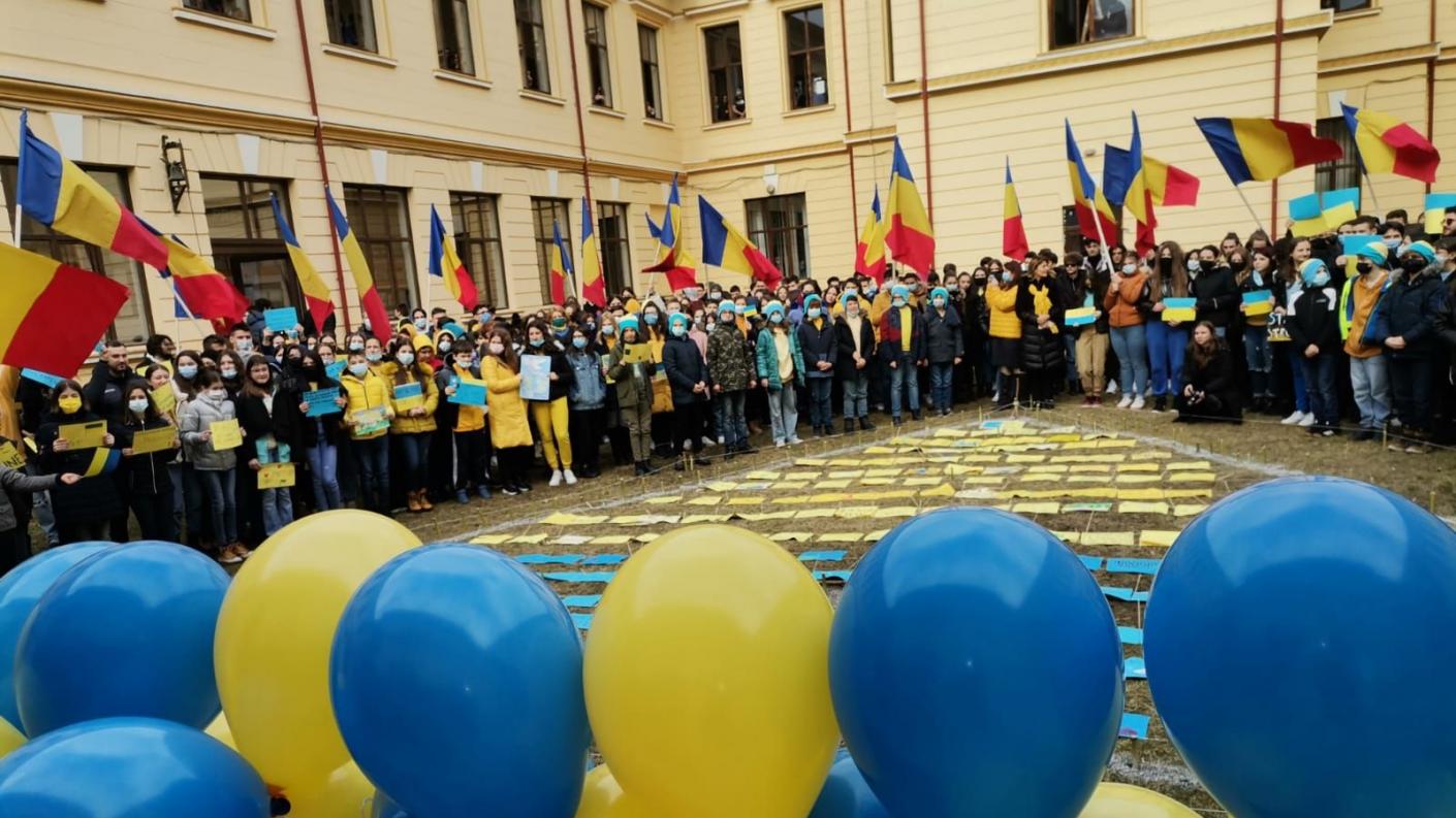 Elevii au simțit că pot fi mesagerii propriilor familii, creând la nivelul colegiului un centru de colectare a alimentelor, a obiectelor de igienă personală și a altor lucruri folositoare refugiaților ajunși la noi în țară. Pe de altă parte, în curtea interioară a școlii, împreună cu părintele inspector Adrian Alexandrescu și preoții slujitori ai Bisericii ,,Sfântul Ioan Botezătorul”, parohia de care aparține colegiul, copiii și cadrele didactice s-au rugat, într-o atmosferă îngerească, pentru pacea lumii.