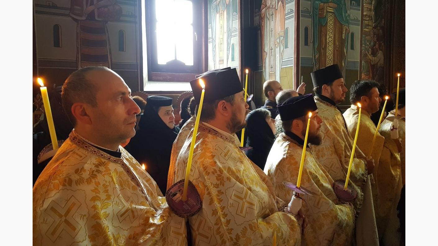 În biserica așezământului monahal, pe care l-a refăcut din temelie și pe care-l o iubea ”ca pe lumina ochilor”, după cum avea să menționeze Înaltpreasfințitul Părinte Ioachim, Arhiepiscopul Romanului și Bacăului, s-au regăsit în rugăciune, alături de ierarh, părinți stareți veniți de la mănăstiri și schituri din toată Moldova. Alături de aceștia, numeroase măicuțe și călugări din toată Mitropolia Moldovei și Bucovinei, reprezentanți ai autorităților centrale, județene și locale, pelerini și credincioși. Pe fața fiecăruia, lângă lumina caldă a lumânării, se puteau vedea urme de lacrimi. Asemenea și pe chipul Înaltpreasfinției Sale, care a săvârșit rânduiala de înmormântare. La sfârșitul slujbei, chiriarhul a rememorat pentru cei prezenți câteva momente din viața părintelui Arsenie Voaideș, ”un model de ascultare și smerenie”.
