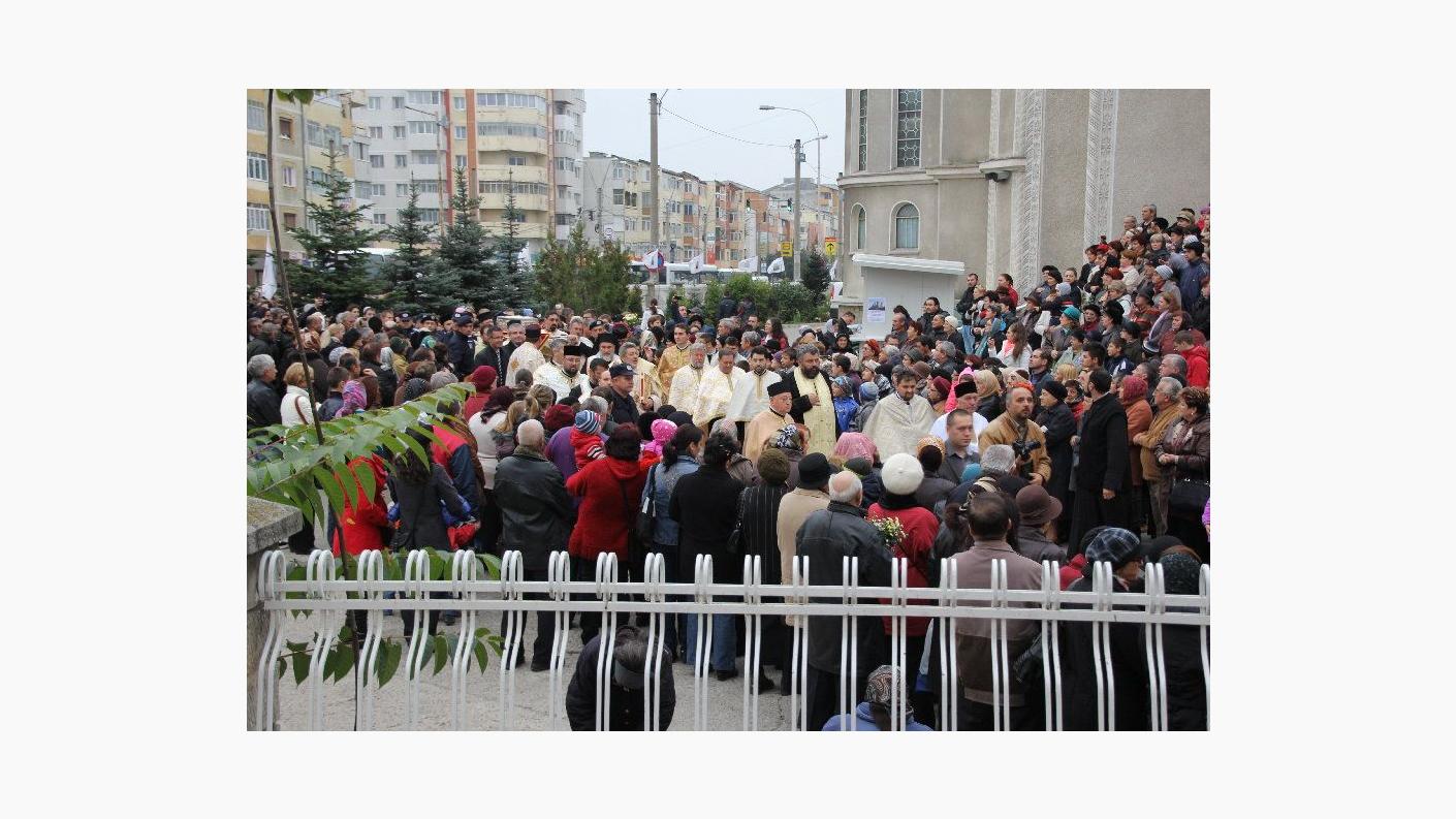 Peste două mii de credincioși au fost prezenți vineri, 11 octombrie, la biserica ”Sf. Dumitru” din municipiul Bacău, cu ocazia aducerii în Eparhia Romanului și Bacăului, în procesiune, a moaștelor Sfinților Împărați Constantin și Elena de la Catedrala Patriarhală. Sfintele odoare au sosit cu binecuvântarea Preafericitului Părinte Daniel, Patriarhul Bisericii Ortodoxe Române, la cererea Preasfințitului Părinte Episcop Ioachim Băcăuanul, și au rămas în Bacău până, sâmbătă, 12 octombrie, când a avut loc slujba de sfințire a picturii și a catapetesmei sfântului locaș.