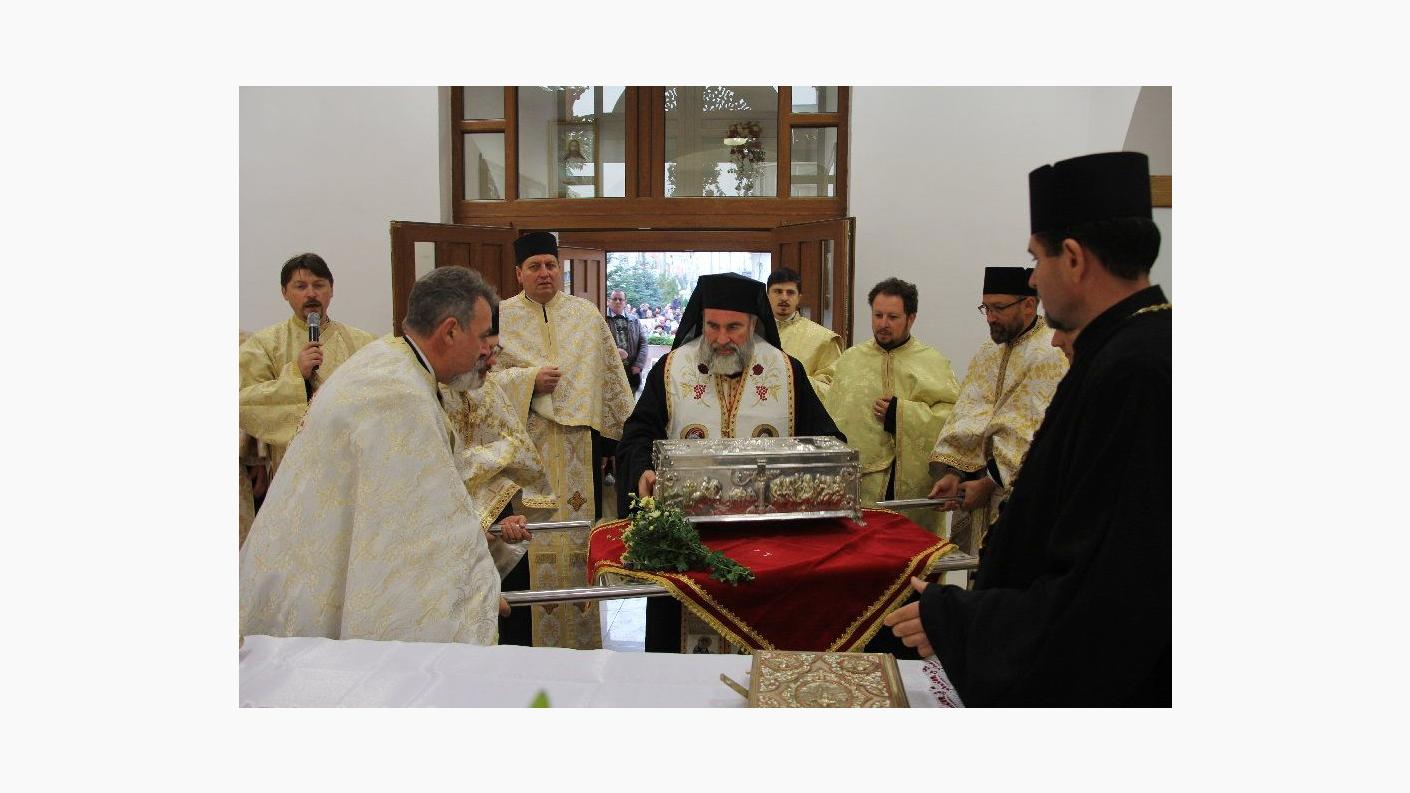 După sosirea sfintelor moaște la ”Mitrovița” Moldovei, cum este denumită biserica din cartierul Narcisa, ierarhul și preoții au citit din acatistul Sfinților Împărați Constantin și Elena, după care PS Ioachim a ținut un scurt cuvânt, în care a mulțumit Preafericitului Părinte Patriarh Daniel, pentru bucuria făcută creștinilor din această zonă a Moldovei.