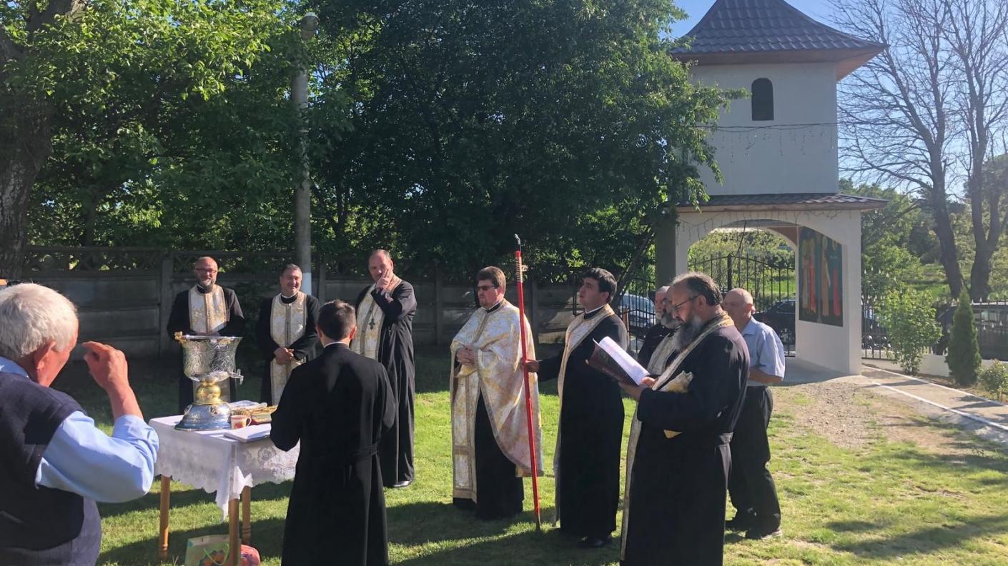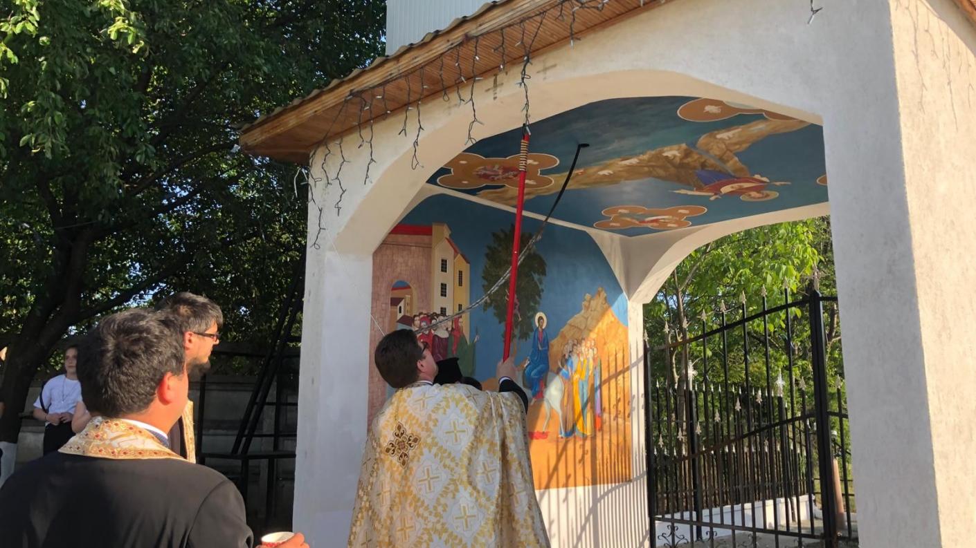 După săvârșirea Vecerniei în ajun de praznic, protoiereul locului a sfințit clopotnița zidită cu multă trudă atât cu ajutorul autorităților locale, cât și prin intermediul enoriașilor parohiei.