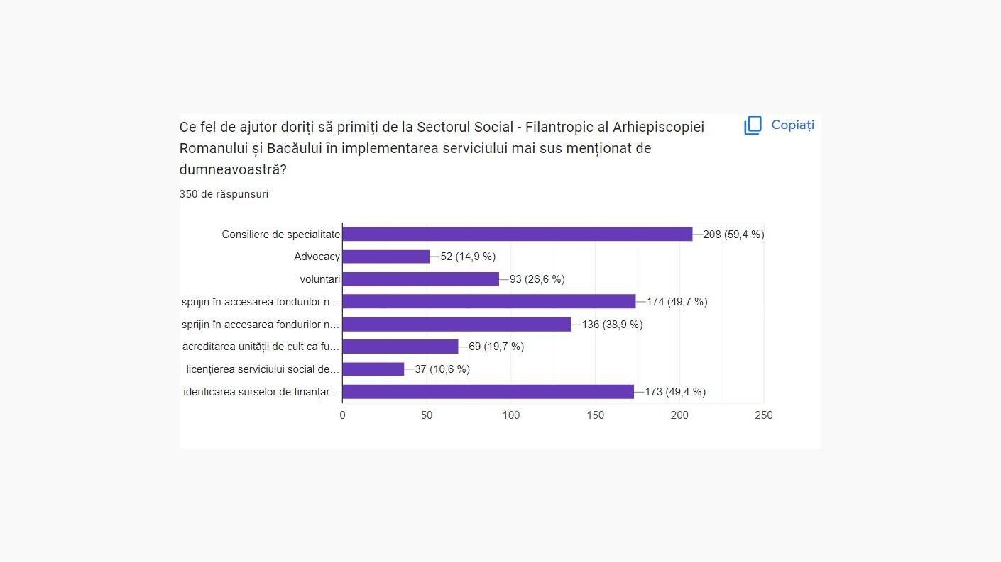 1 noiembrie-30 decembrie 2022, inventarierea resurselor existente, a nevoilor sociale din comunitate prin aplicarea formularului google forms, cu sprijinul Birourilor de asistență socială din cadrul celor 5 protopopiate.