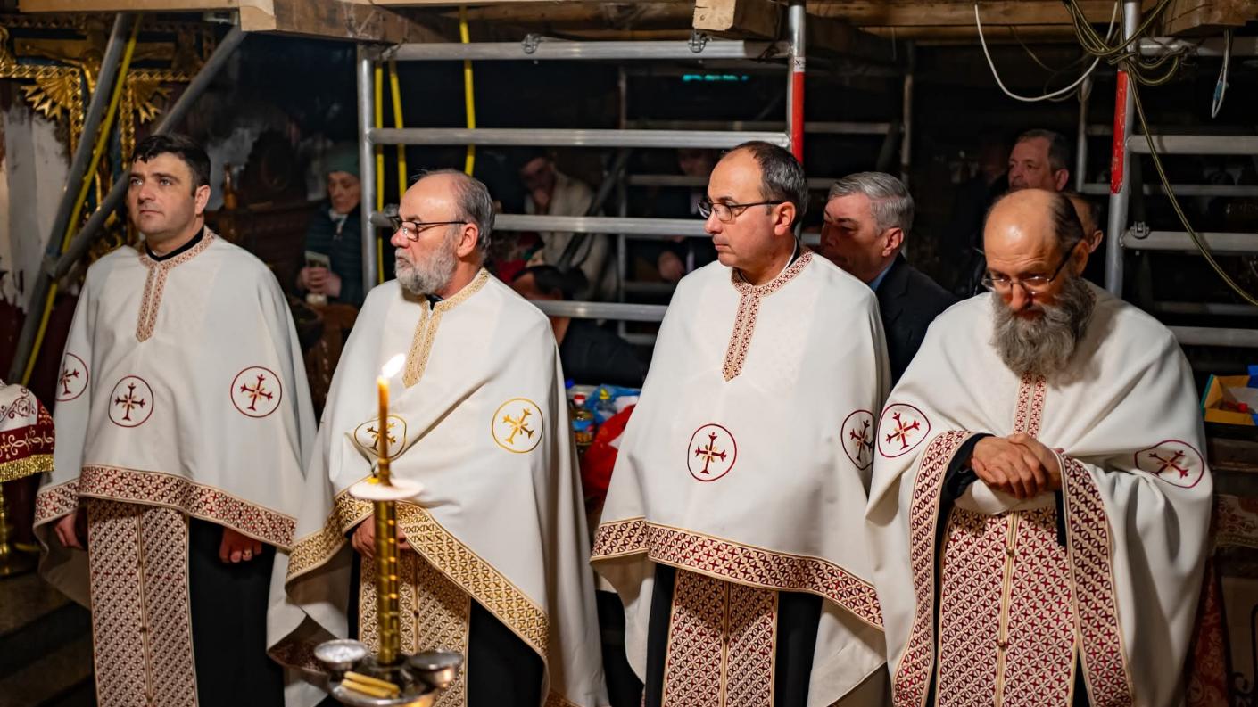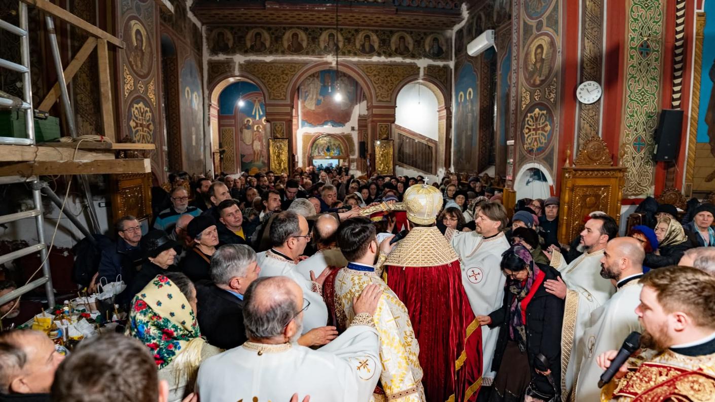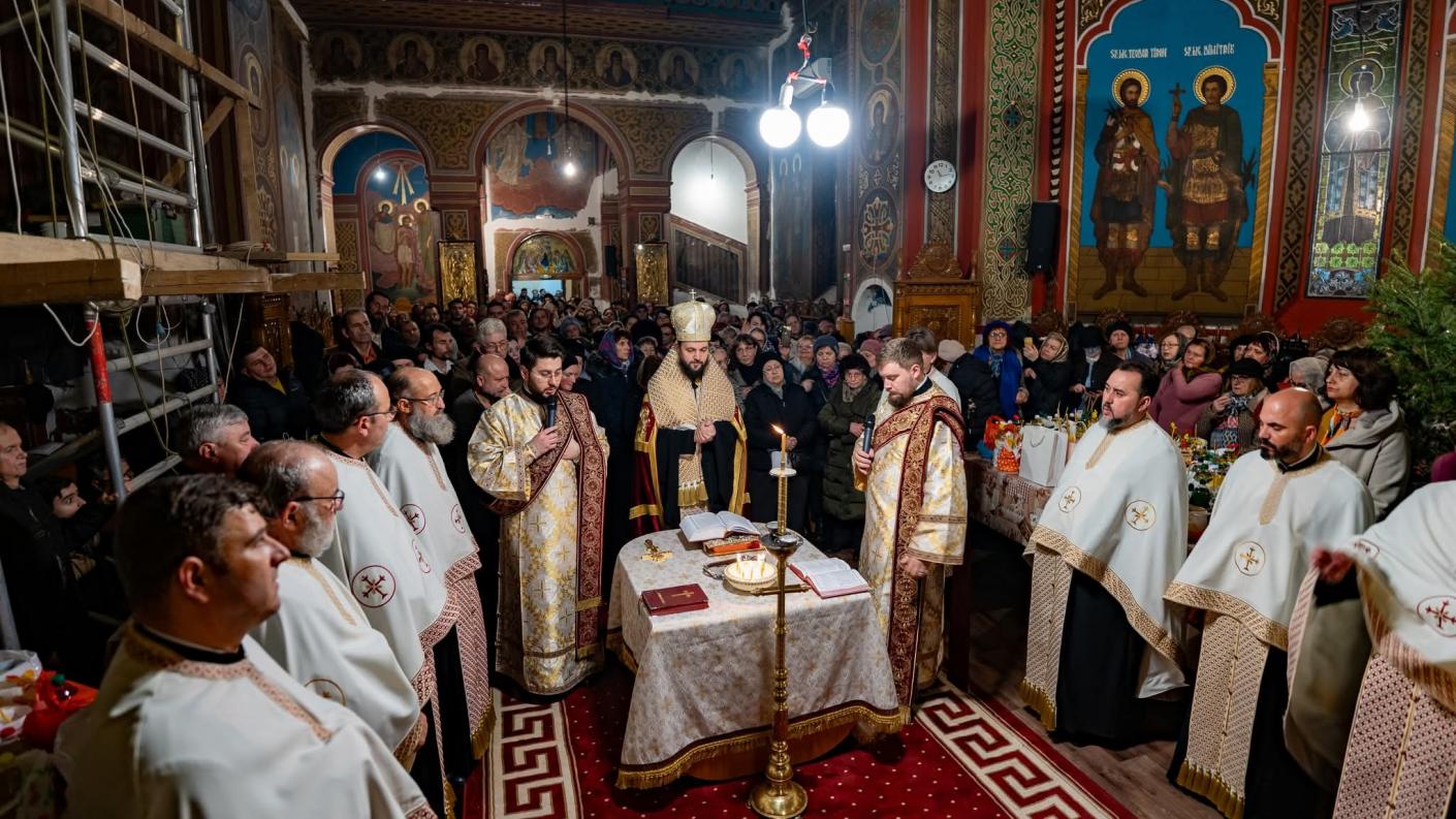 Seara a debutat cu Slujba Sfântului Maslu, săvârșită de un sobor de preoți și încheiată de PS Părinte Teofil Trotușanul, care a rostit rugăciunile de dezlegare și binecuvântare pentru cei prezenți. În continuare, Preasfinția Sa a rostit un cuvânt de învățătură cu tema „Mărturie, mărturisire și mărturisitor”, evidențiind chemarea fiecărui creștin de a-și asuma credința cu sinceritate, responsabilitate și statornicie în fața lumii. După Slujba Sfântului Maslu a fost oficiată slujba Acatistul Mântuitorului Iisus Hristos, urmat, după miezul nopții, de Sfânta Liturghie arhierească.  În atmosfera tainică a serii, cântarea suavă a tinerilor din corul Glas, care au oferit răspunsurile liturgice, s-a unit cu rugile celor care au ales să își petreacă noaptea în priveghere  și rugăciune. Spre dimineață preoți si credincioși au plecat spre casele lor cu inimile pline de pacea și bucuria aduse de întâlnirea cu Hristos. (Mioara Ignat)