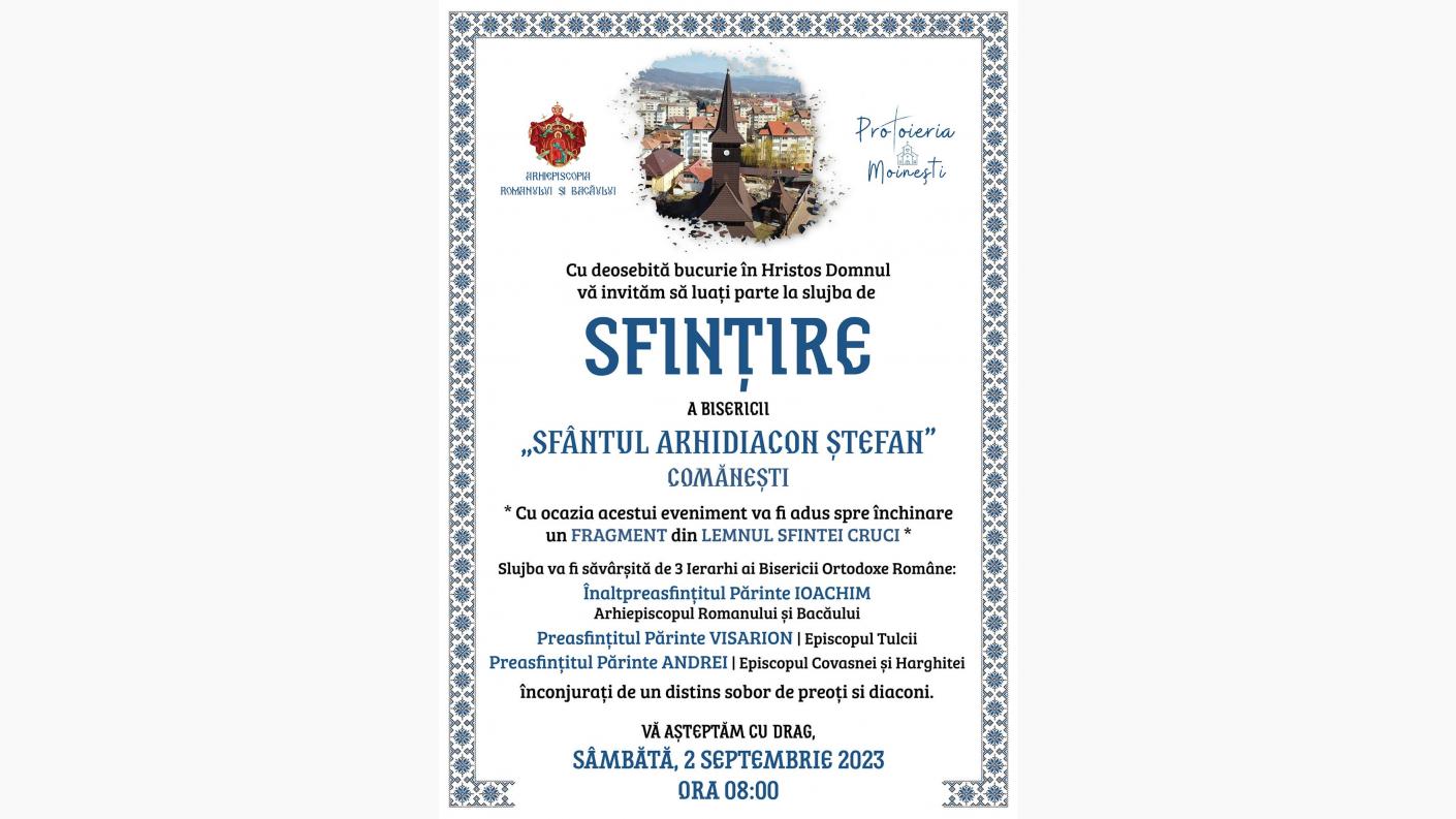 1-2 septembrie – Biserica cu hramul Sfântul Arhidiacon Ștefan – Comănești;