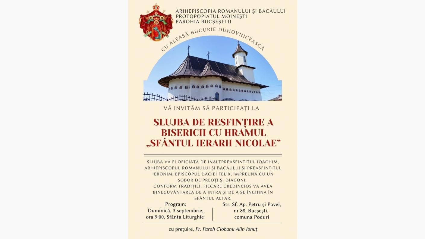 7-8 septembrie – Biserica cu hramul Nașterea Maicii Domnului și Sfântul Nicolae - Moinești;