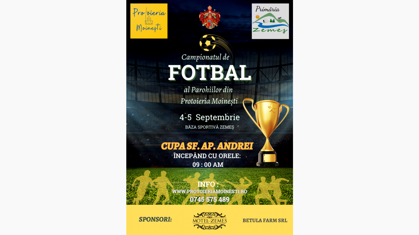 Campionatul de fotbal ,,Cupa Sf. Andrei” – 4-5 septembrie – Baza sportivă Zemeș – ora 9:00;