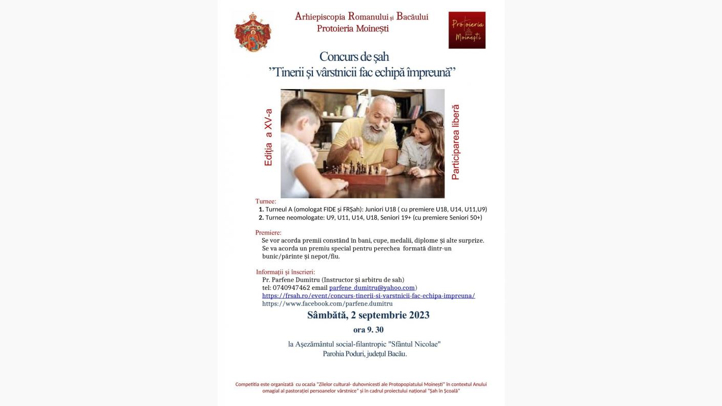 Campionatul de șah (Cupa de șah a Protoieriei) – 2 septembrie – Parohia Poduri – ora 9:30;