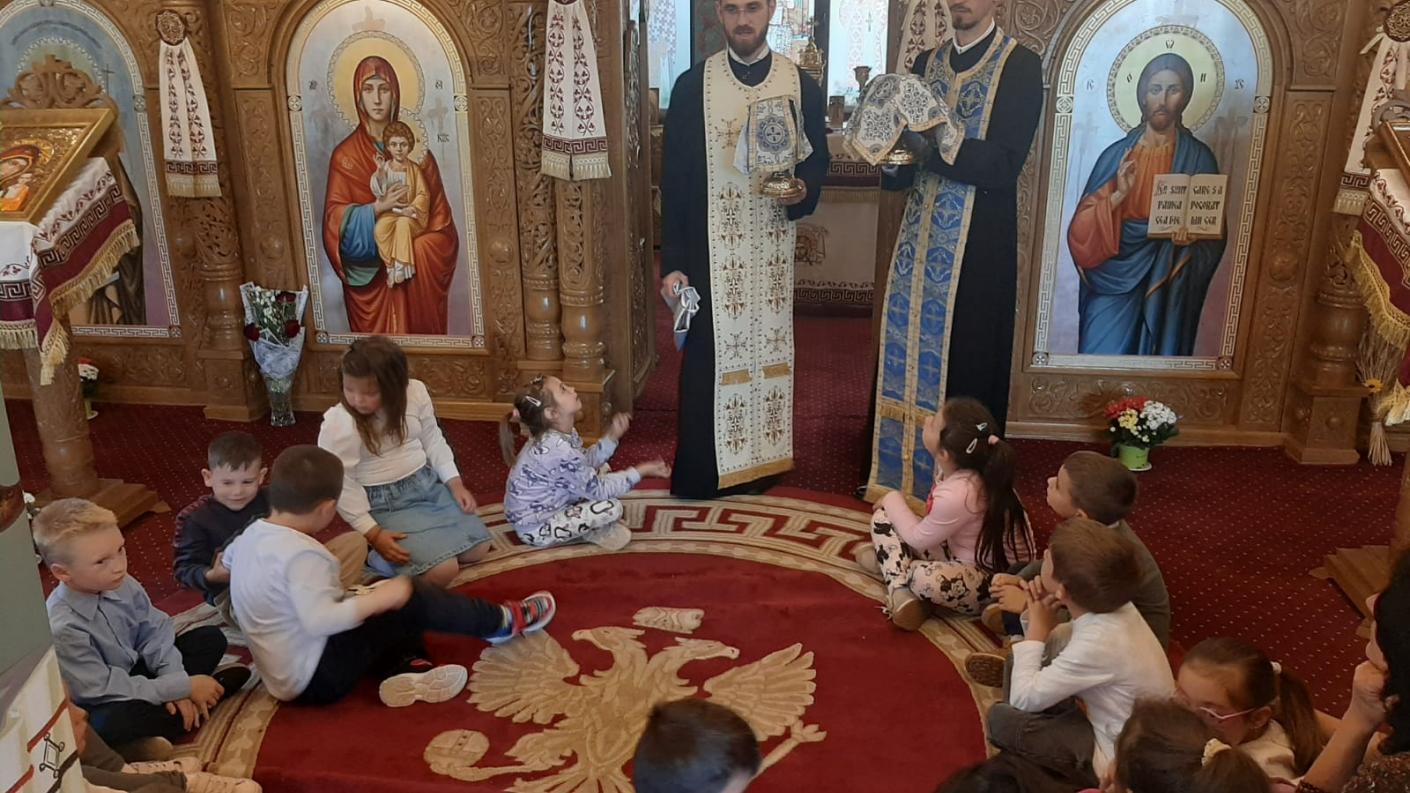 Vineri, 30 mai, un grup de copii, format din preșcolari și elevi ai Clasei Pregătitoare de la Școala Gimnazială „Învățător Neculai Pâslaru”, din Cașin, au participat la o altfel de oră de Religie, desfășurată în capela cu hramul „Sfântul Apostol și Evanghelist Ioan Teologul”, din clădirea Protoieriei Onești.