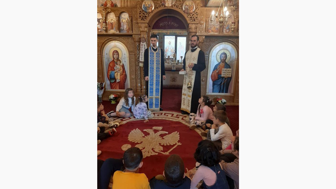 După încheierea slujbei s-a desfășurat ora de Religie propriu-zisă, în cadrul căreia părinții au interacționat cu copiii, le-au vorbit despre spațiul liturgic, despre obiectele ce se regăsesc în interiorul acestuia, despre semnificația veșmintelor liturgice, precum și despre felul în care trebuie să stea credincioșii în biserică. Reușita unei astfel de ore a constat în faptul că cei mici au putut vedea cu proprii ochi obiectele liturgice, curiozitățile lor fiind satisfăcute pe deplin.