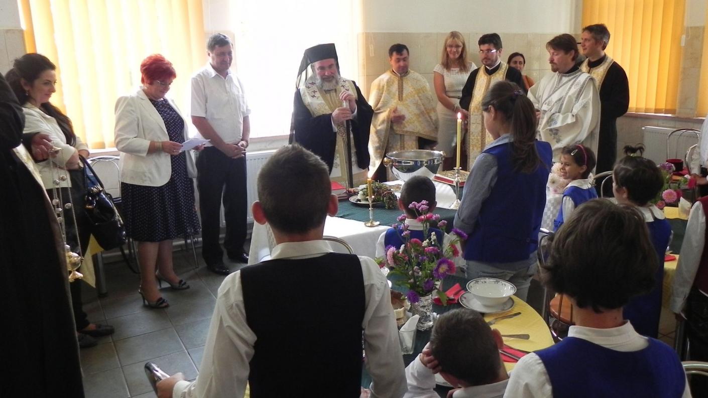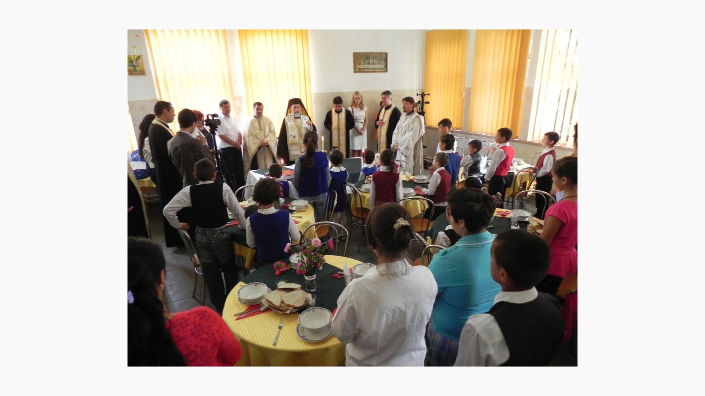 Masa din sala Centrului Rezidențial ”Henri Coandă” a fost astăzi plină cu daruri ale Bisericii. Pe fiecare sacoșă era înscris numele câte unui copilaș din cei 75 câți sunt în grija acestei instituții. Alături de conducere și angajați, copiii de la ”Henri Coandă” l-au întâmpinat pe Preasfințitul Părinte Episcop Ioachim Băcăuanul într-un mod admirabil. Au cântat în cor ”Cuvine-se cu adevărat”, dirijați discret de preotul Marian Vătămănescu, cel care, din încredințarea ierarhului s-a ocupat ani buni de zidirea duhovnicească a acestor copii. ”Sunt fără părinți, abandonați, în dificultate şi cu nevoi speciale”, avea să explice preotul Vătămănescu. Cu privirea vibrândă de emoția reîntâlnirii cu aceste chipuri blânde și inocente, Preasfințitul Ioachim i-a binecuvântat și a dialogat cu ei. I-a îndemnat să învețe, să se roage pentru educatorii lor și pentru cei care le întind o mână de ajutor. La slujba de sfințire a apei, cu toții au rostit Rugăciunea Domnească. ”De fiecare dată ne-a impresionat dăruirea totală, jertfelnică a acestui personal, care oferă găzduire, îngrijire, educaţie şi pregătire în vederea reintegrării sau integrării familiale şi socio-profesionale a acestor copii, care au atâtea nevoi. Am auzit strigarea și ne bucurăm că aducem un crâmpei de linișite, de bucurie, de siguranță în acest spațiu. Să fiți lumini pentru acești copii și Dumnezeu vă va răsplăti pentru dragostea dumneavoastră”, i-a îndemnat ierarhul pe angajații Centrului Rezidențial. ”În cadrul proiectului ”Lăsați copiii să vină la Mine și nu-i opriți”, derulat pentru al doilea an la inițiativa Preasfințitului Părinte Episcop Ioachim Băcăuanul, parohia ”Sfântul Nicolae”, prin binecuvântarea Preasfinției Sale, a adus îmbrăcăminte, rechizite și dulciuri la fiecare dintre cei 75 de copilași ai acestui centru”, a menționat preotul Costică Busuioc, parohul bisericii ”Sfântul Nicolae” din Bacău. Apoi, rând pe rând, făcându-și loc grăbiți printre mese, copiii s-au îndreptat spre brațele părintești ale ierarhului, care a readus parcă farmecul sărbătorilor cu daruri în mijlocul lor. ”Vă mulțumim pentru proiectul pe care îl derulați, pentru că ați fost și sunteți alături de noi. Vă asigurăm Preasfinția Voastră că facem tot ce depinde de noi ca să-i ridicăm, să-i facem oameni pe acești copilași. Ne bucurăm că ați avut ocazia să fiți alături de noi și, când ați găsit puțin timp, ne-ați ajutat. Vă asigurăm de toată dragostea noastră”, a menționat Sorin Bîrlădeanu, director în cadrul Direcţiei Generale de Asistenţă Socială şi Protecţia Copilului Bacău.