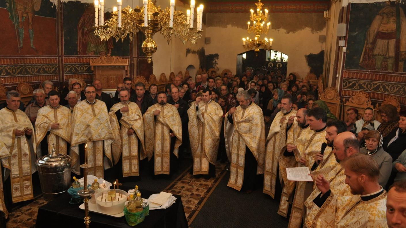 Într-o atmosferă de rugăciune stăruitoare şi priveghere duhovnicească, soborul alcătuit din 22 de preoţi, majoritatea făcând parte din Cercul Pastoral „Acoperământul Maicii Domnului” – Protoieria Bacău, dar şi alţi preoţi invitaţi de către părintele paroh Marius Roşu, s-au rugat sub protia părintelui protoiereu Costică Busuioc, alături de părintele Eugen Ciprian Ciuche, consilier eparhial al Sectorului social-filantropic şi misionar, și împreună cu mulțimea numeroasă a credincioșilor prezenți.