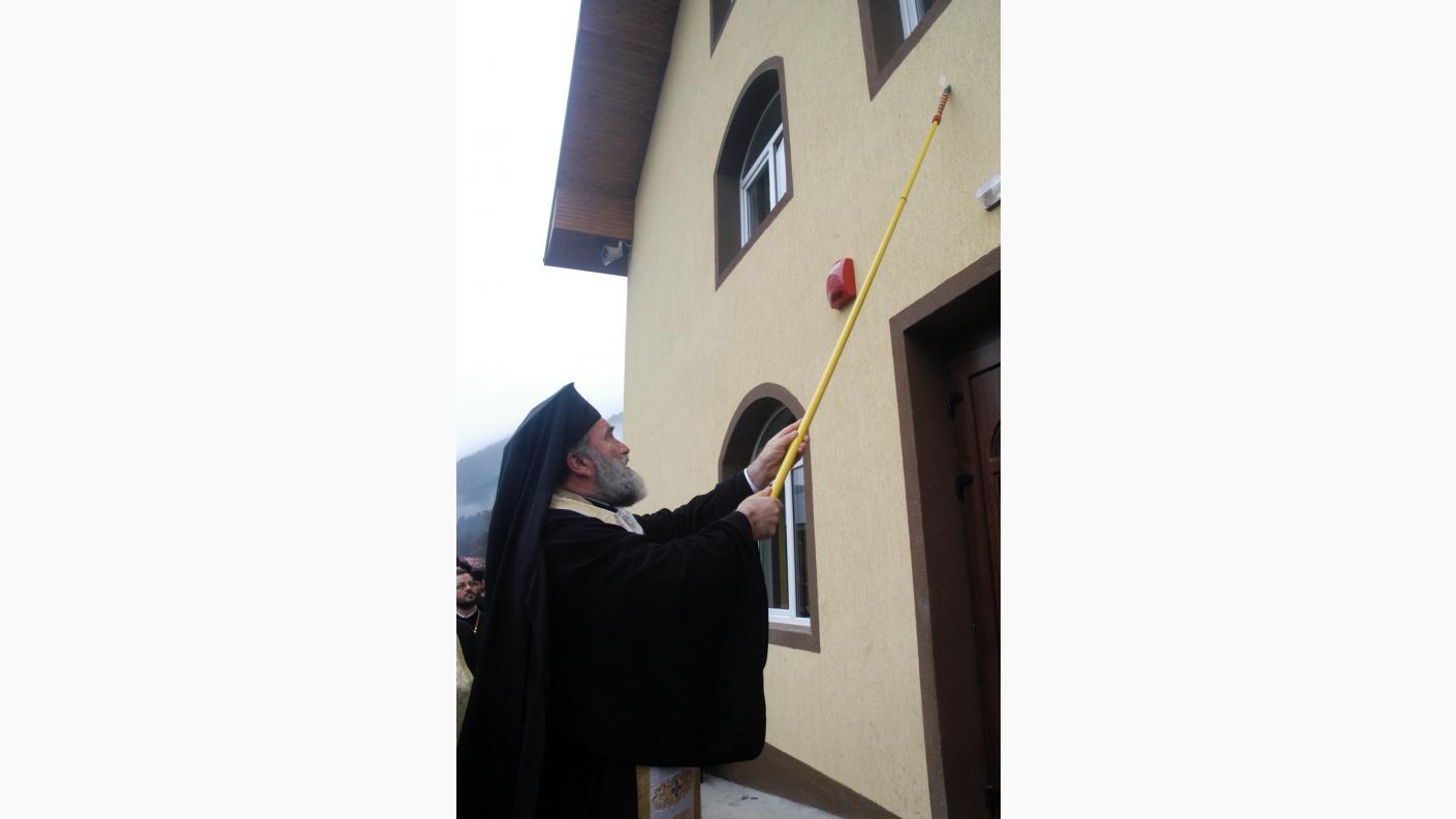 În cuvântul său, ierarhul de la Roman, Preasfințitul Părinte Episcop Ioachim Băcăuanul, a rememorat câteva file din istoria acestui spațiu de ocrotire a bătrânilor nevoiași, devenit o emblemă a Eparhiei Romanului și Bacăului și un simbol al Ortodoxiei pe Valea Oituzului. ”Într-o societate amnezică, trebuie să facem anamneză”, a spus PS Ioachim, precizând și faptul că ”pe Valea Oituzului, cea mai accesibilă trecătoare din Carpați către Ardeal, către Europa” se vor face, începând cu anul 2014, slujbe de pomenire a tuturor eroilor căzuți pe aceste plaiuri, în Primul Război Mondial și nu numai. La final, toți cei care s-au implicat în derularea acestui amplu proiect social-filantropic au primit distincții de vrednicie din partea Preasfințitului Ioachim Băcăuanul.