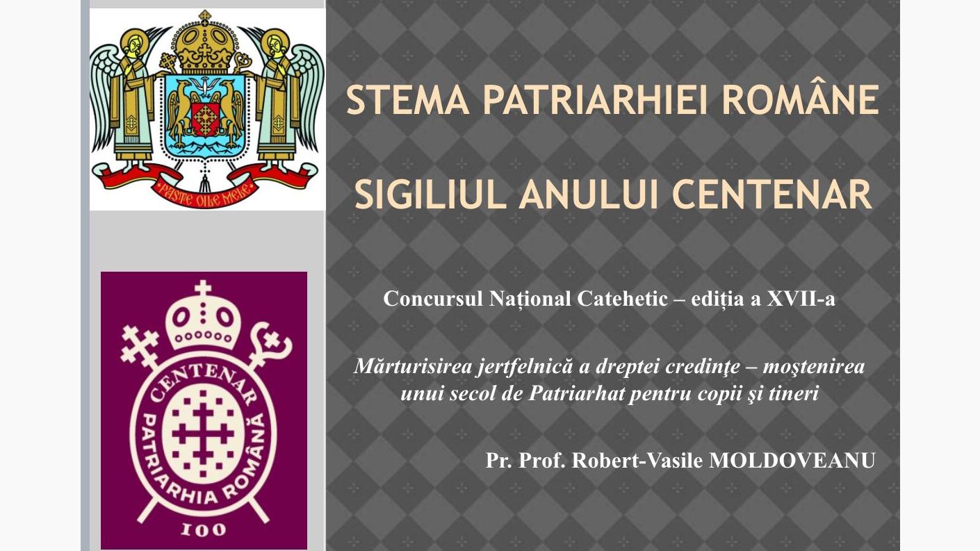 Tema acestei activități a avut în centrul atenției înțelegerea simbolurilor ce se regăsesc pe stema Patriarhiei Române și pe sigiliul Anului Centenar. Prin intermediul acestei cateheze, participanții au deslușit înțelesurile grafice, dar și locul fiecărei părți ce compun atât stema, cât și sigiliul.