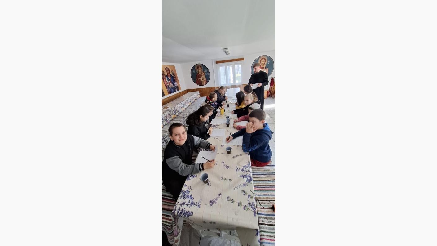După momentul catehetic, copiii au primit fișe de activitate sub forma unui chestionar, cu întrebări menite să îi ajute să înțeleagă și să aprofundeze tema discutată.
