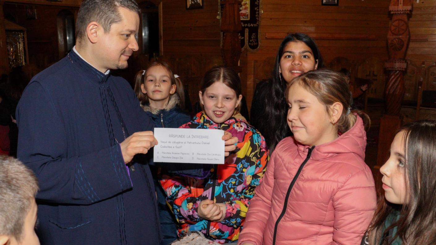 Momentul jocului a adus multă bucurie, competitivitate, entuziasm și dăruire. Toți participanții s-au implicat pentru ca echipa lor să obțină punctaj maxim. A câștigat grupul condus de tânăra Maria, fiecare membru primind ca premiu cartea Înaltpreasfințitului Părinte Arhiepiscop Ioachim, „Panteonul sufletului meu”, și o iconiță cu Maica Domnului. În pauza dintre cele două momente ale serii, cei 30 de copii au fost serviți cu dulciuri și apă plată. Întreaga activitate s-a desfășurat pe parcursul a trei ore.