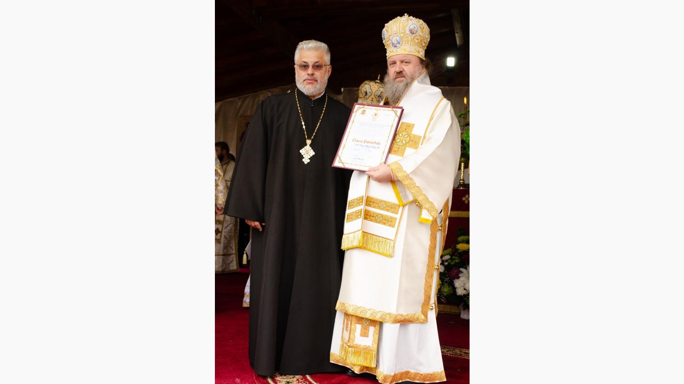 La rândul său părintele Daniel Prepeliță a oferit ierarhilor, ca semn al prețuirii și recunoștinței, câteva daruri simbolice (câte o icoană în care sunt reprezentanți Sfinții Împărați Constantin și Elena, sfinții transilvăneni pomeniti astăzi în calendar și Acoperământul Maicii Domnului, și câte un omofor).