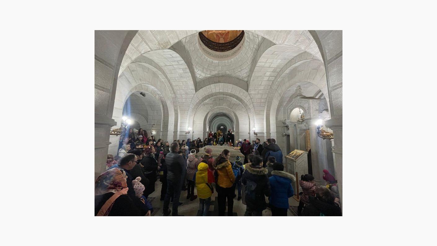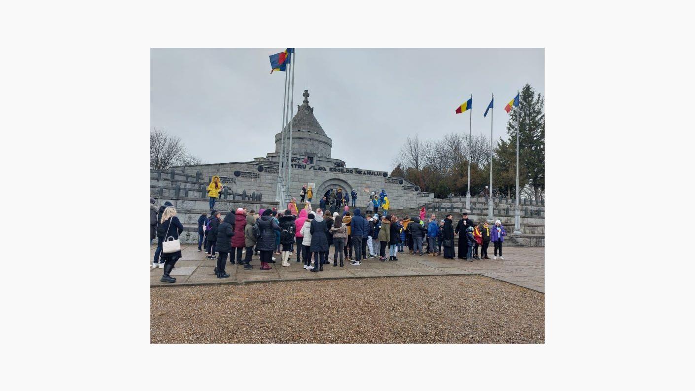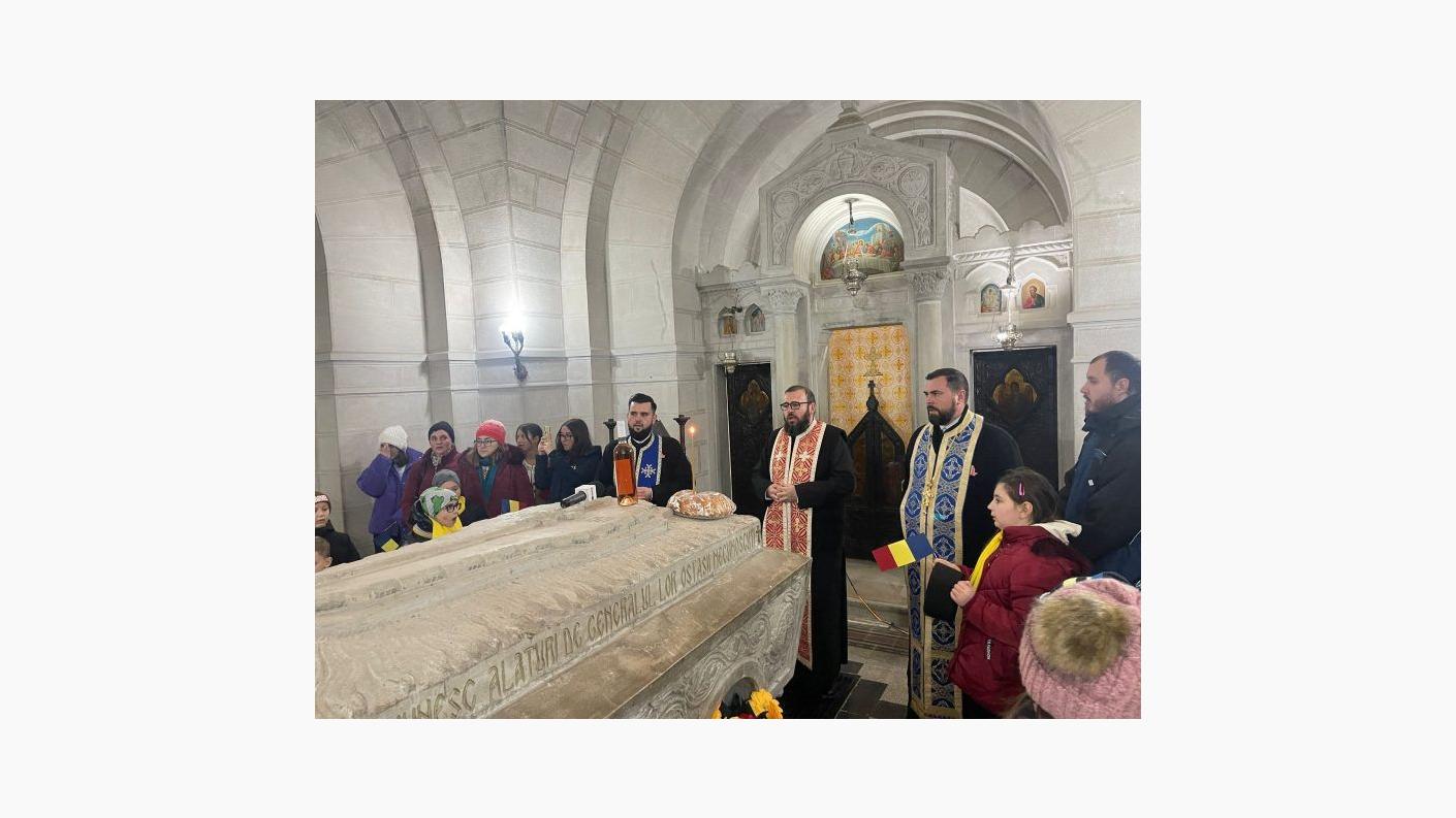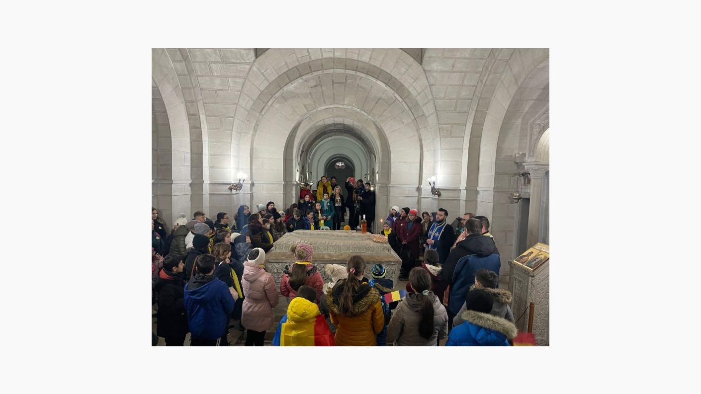 După participarea la Sfânta Liturghie și cuminecarea cu Sfintele Taine, tinerii, alături de coordonatorii lor, preotul Ionuț Epure și preotul Răzvan-Dimitrie Radu, s-au îmbarcat în două autocare și au plecat spre edificiul de la Mărășești. Odată ajunși, mulțimea de copii s-a așezat în jurul mormântului Generalului Eremia Grigorescu, adăpostit în capela Mausoleului, prilej cu care cei doi preoți, alături de părintele Apostol, capelan al locului, au săvârșit un Trisaghion pentru miile de Eroi care s-au luptat și s-au jertfit câștigând prin sângele lor libertatea noastră de astăzi.